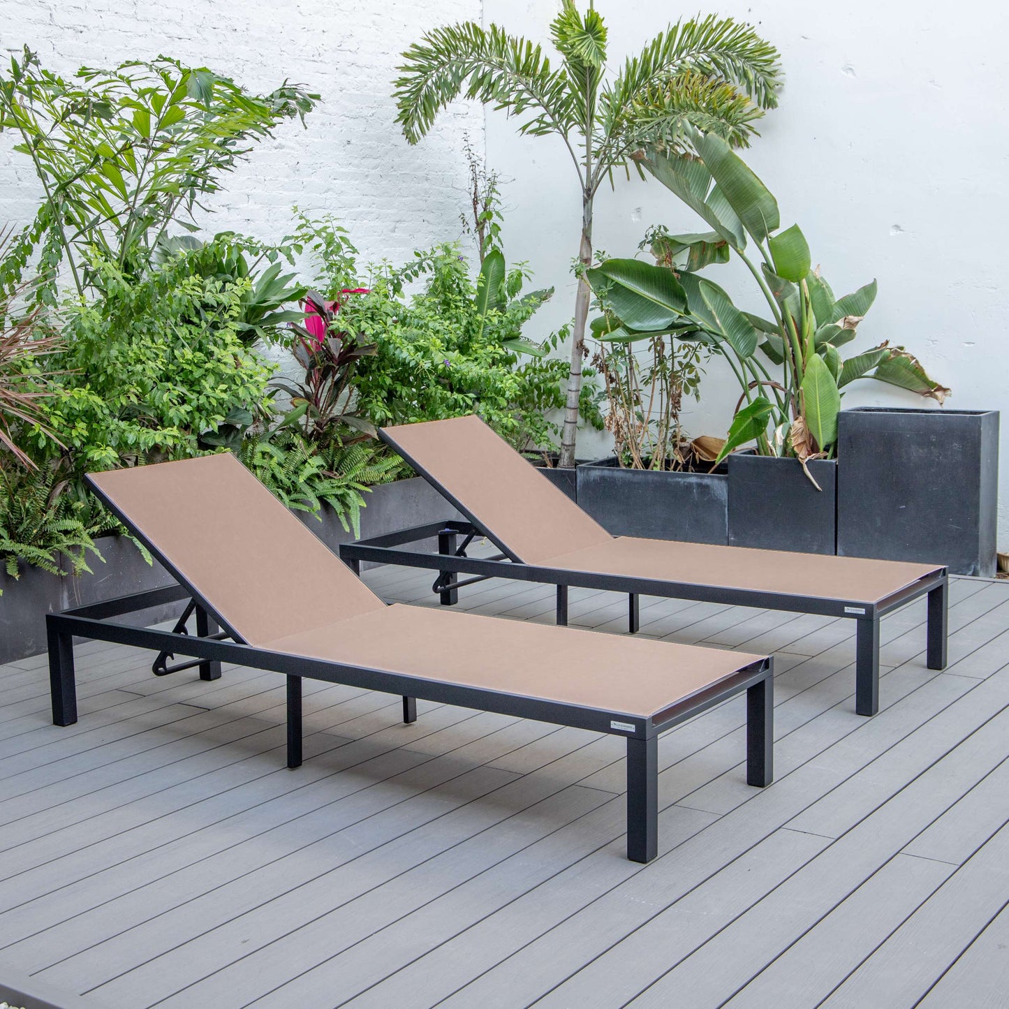 LeisureMod Marlin Patio Chaise Lounge Chair With Black Aluminum Frame, Set of 2