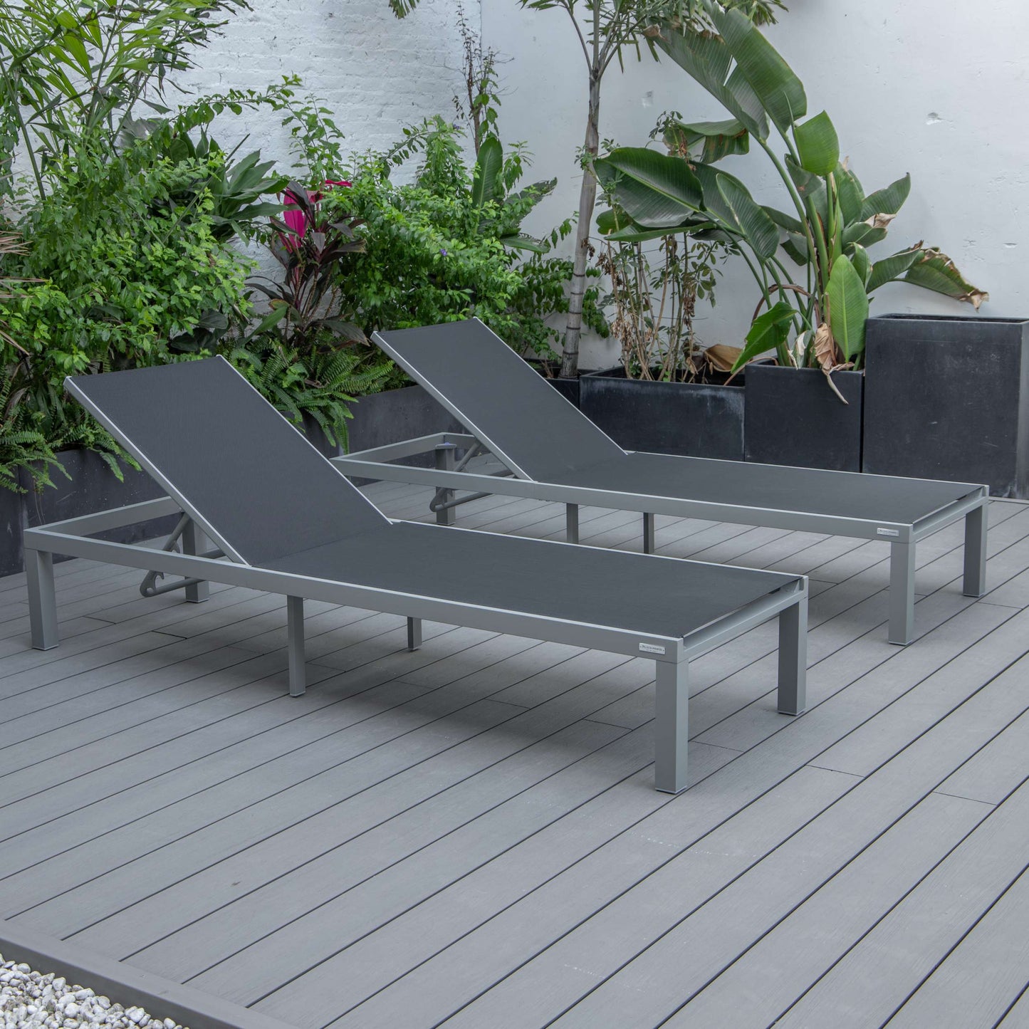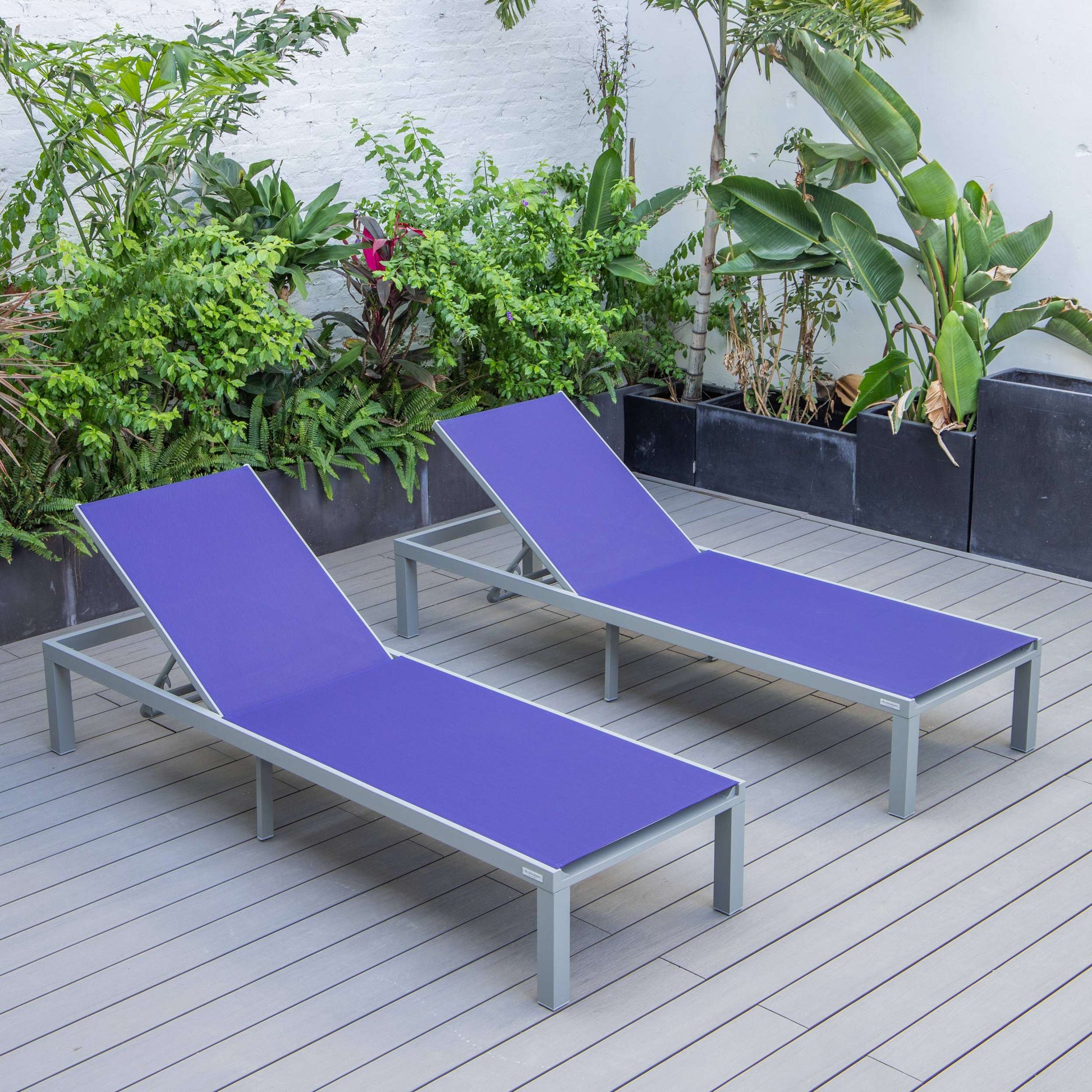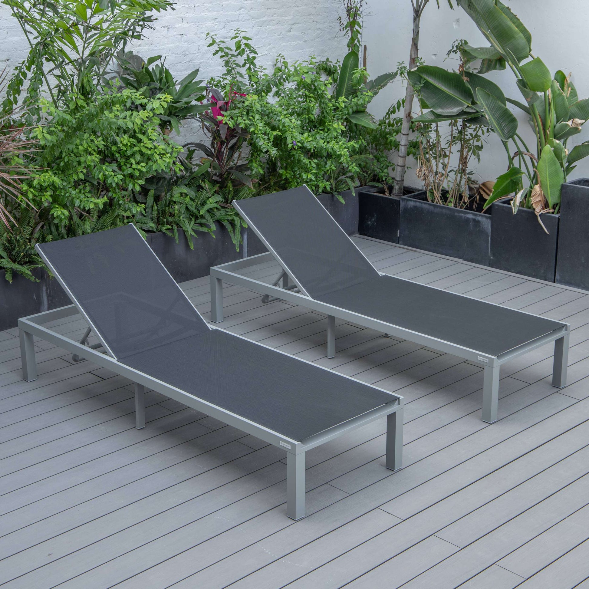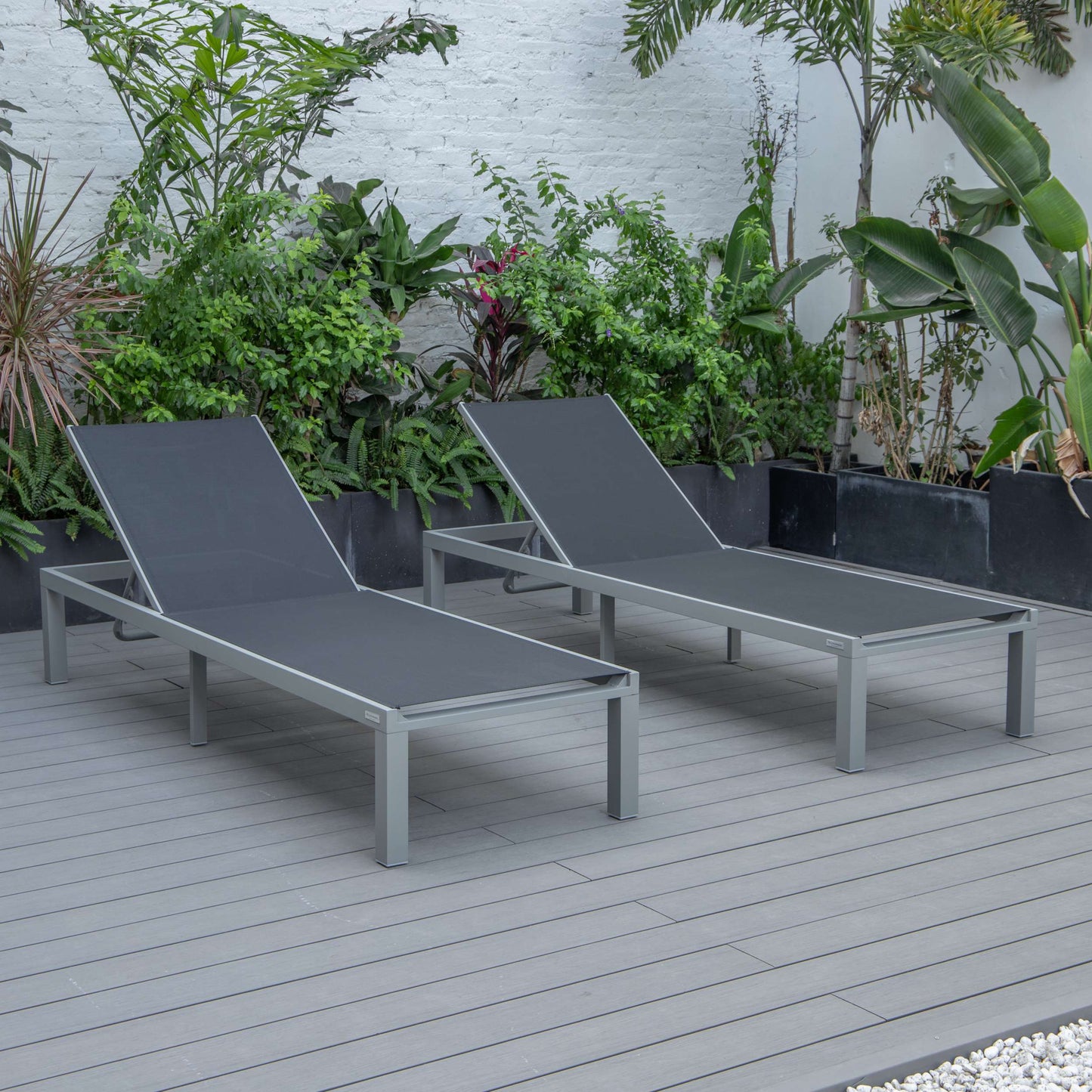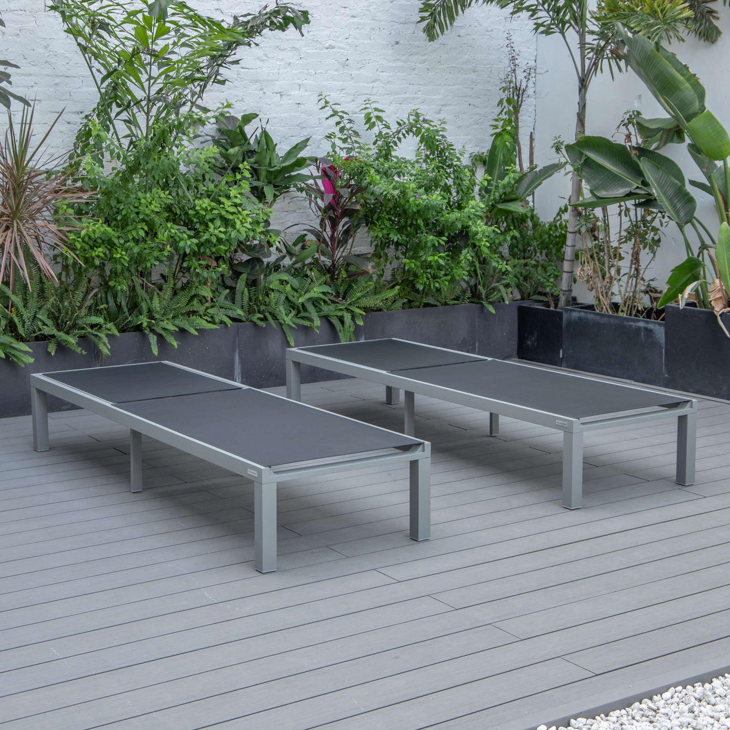 LeisureMod Marlin Patio Chaise Lounge Chair With Grey Aluminum Frame, Set of 2