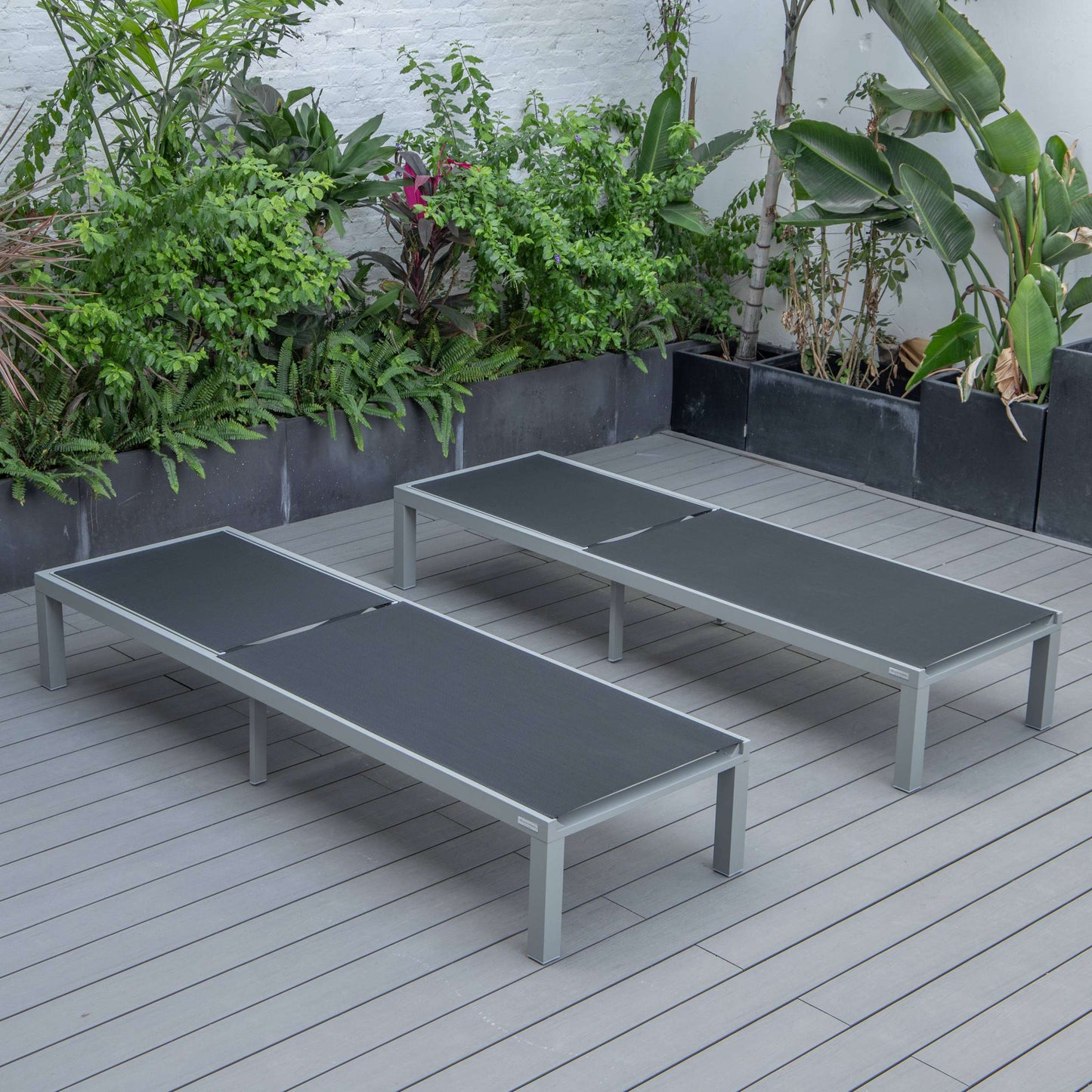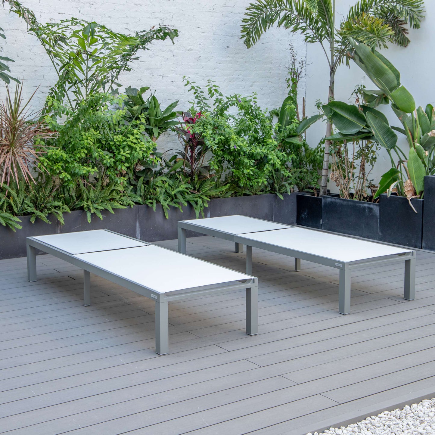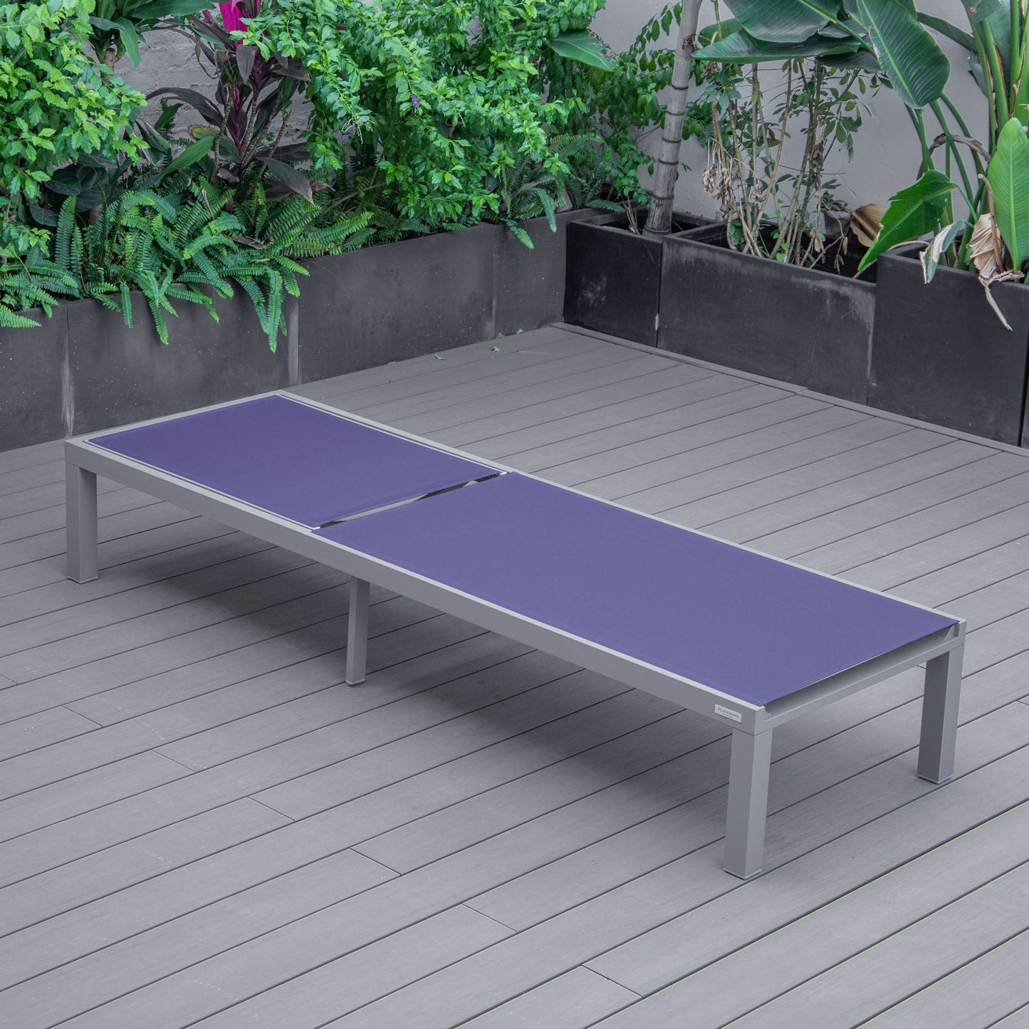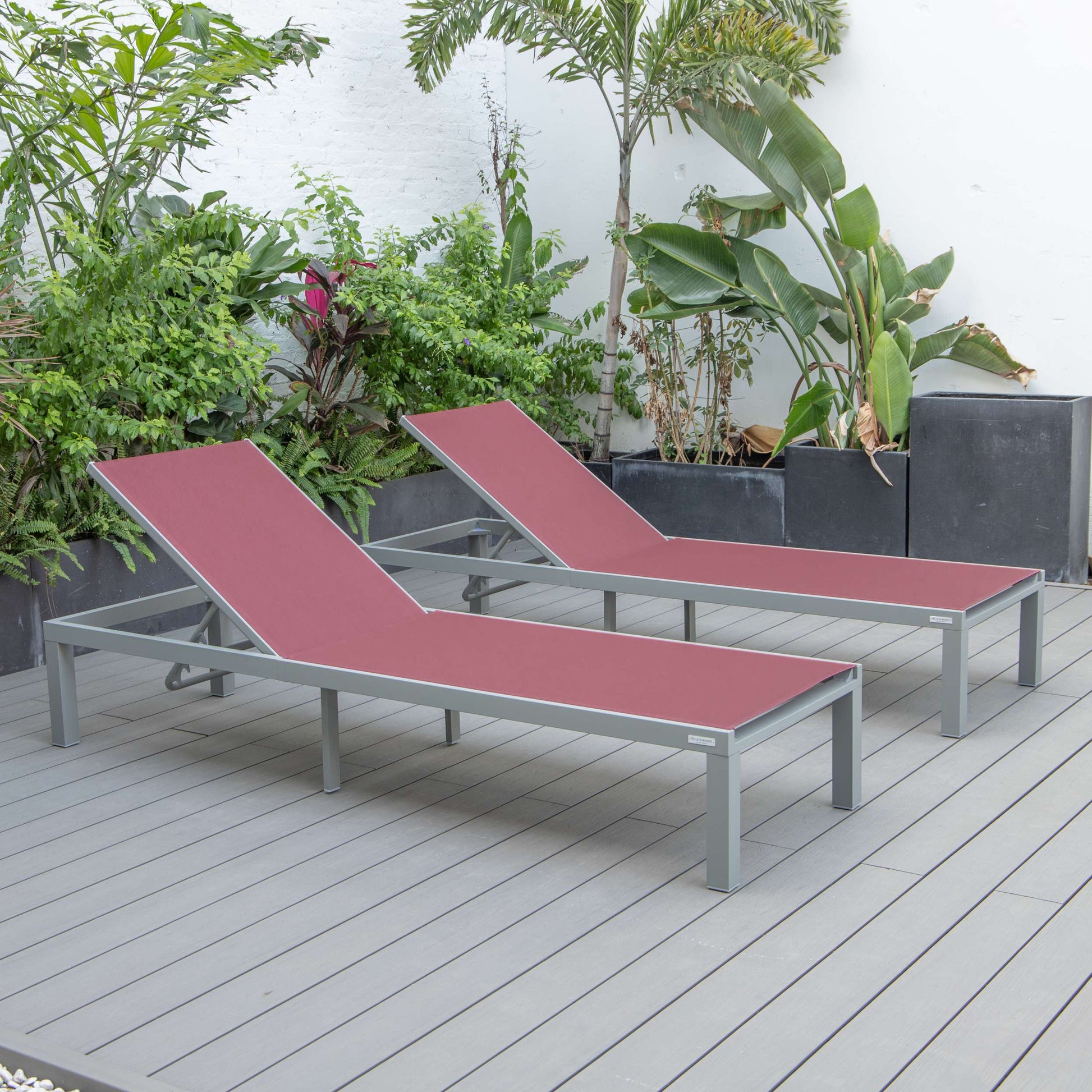 LeisureMod Marlin Patio Chaise Lounge Chair With Grey Aluminum Frame, Set of 2
