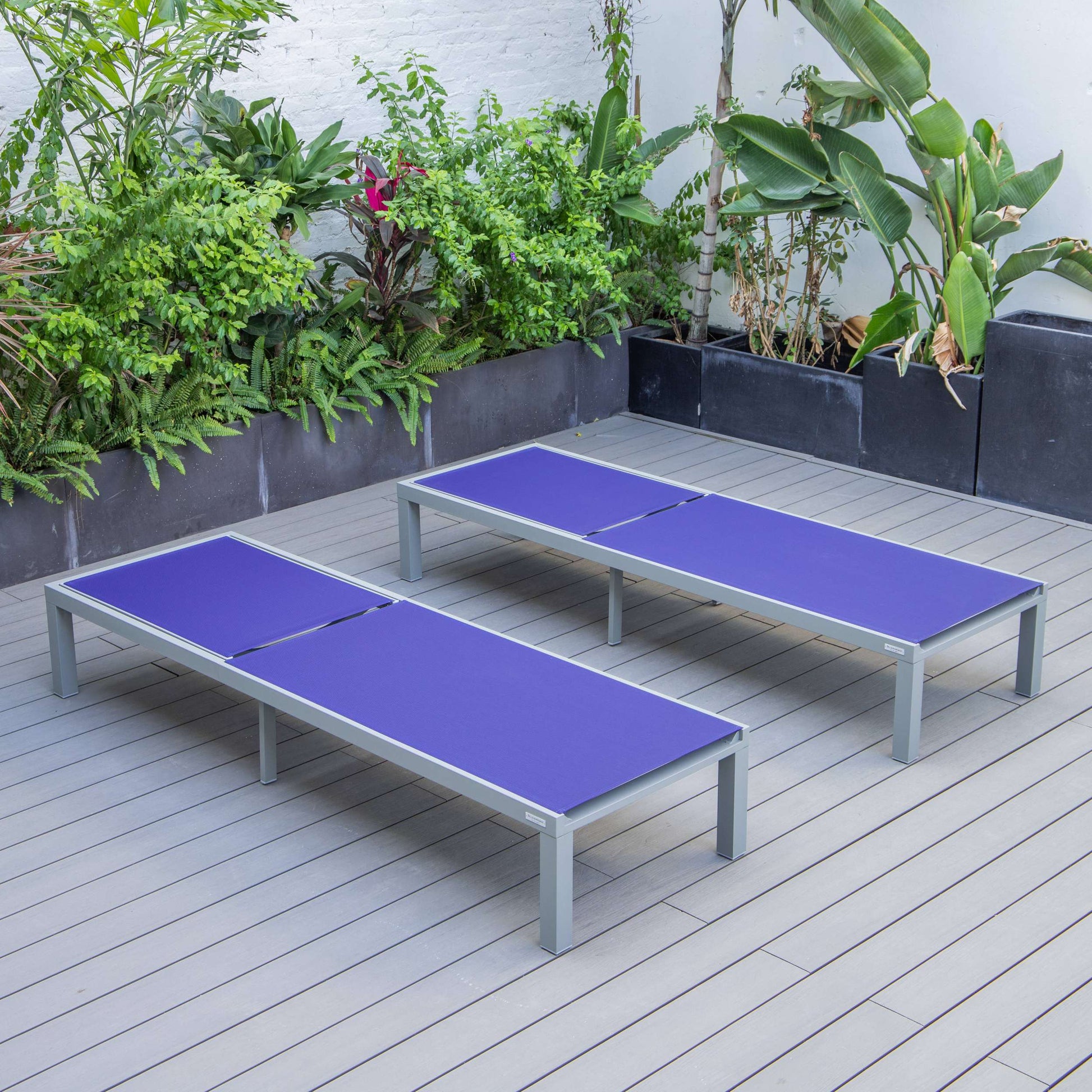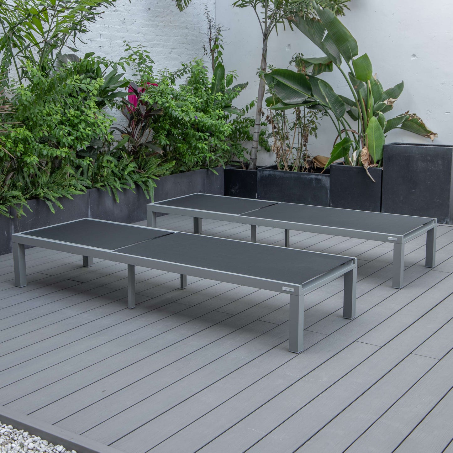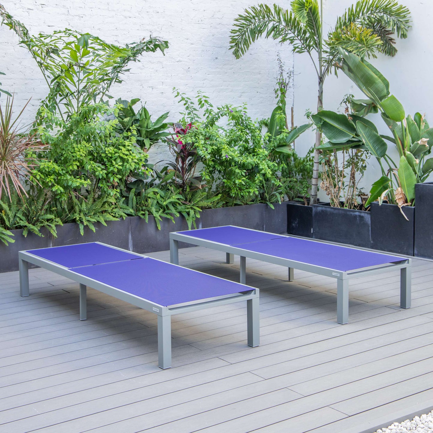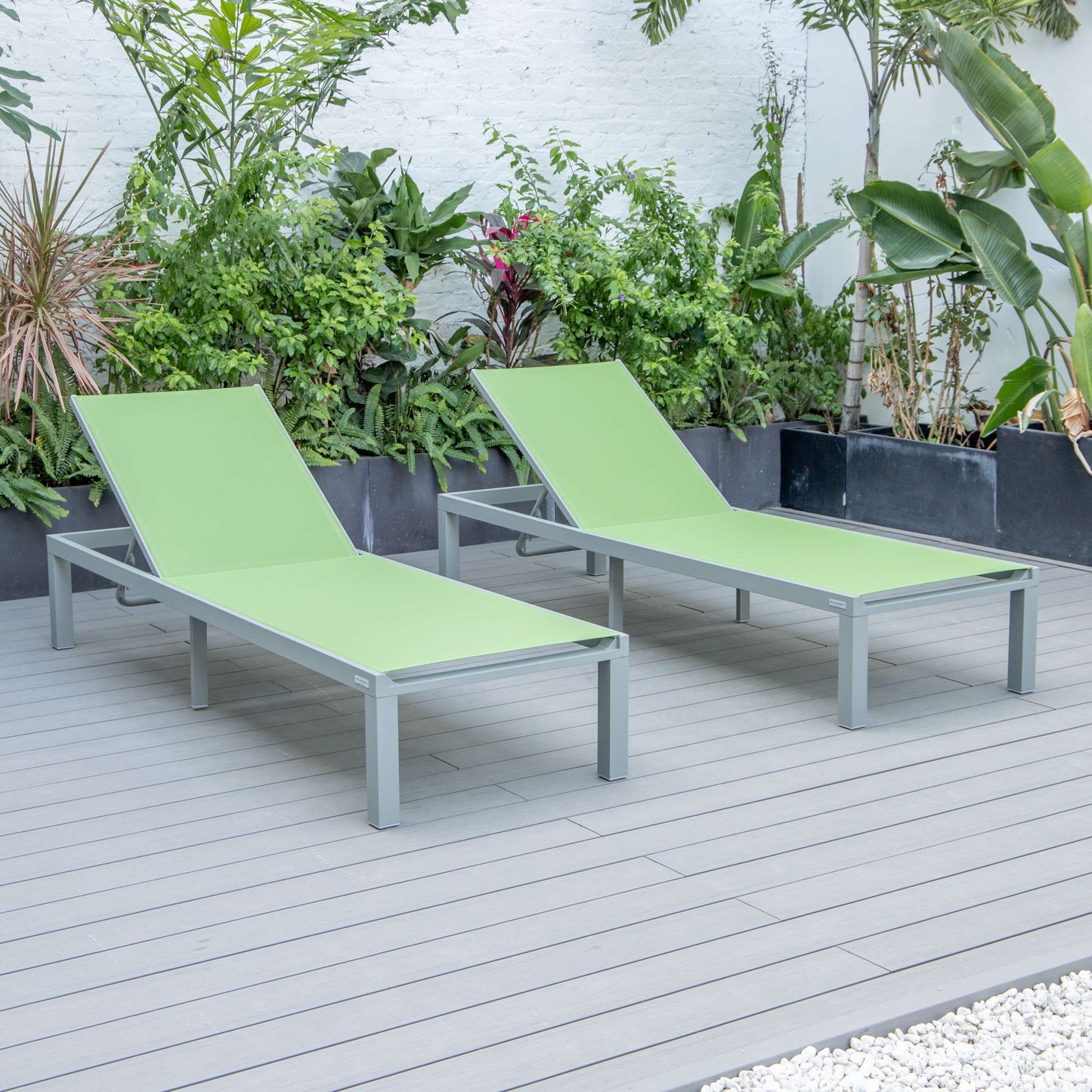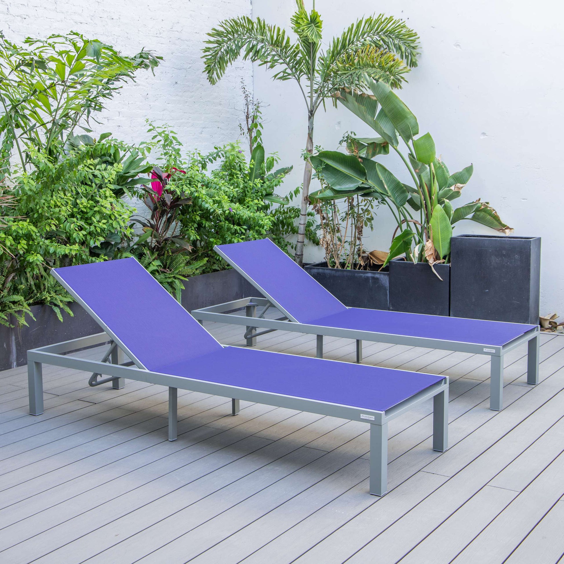 LeisureMod Marlin Patio Chaise Lounge Chair With Grey Aluminum Frame, Set of 2