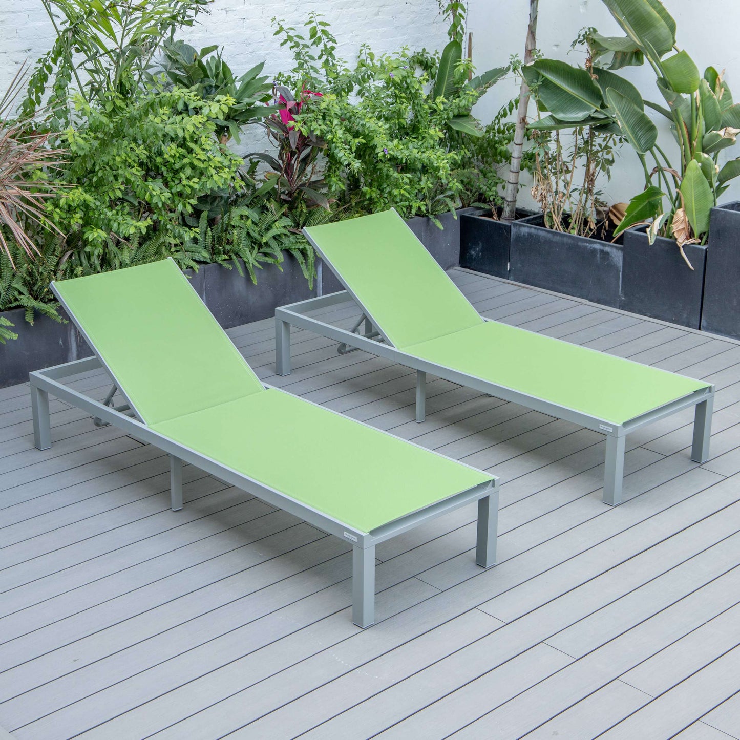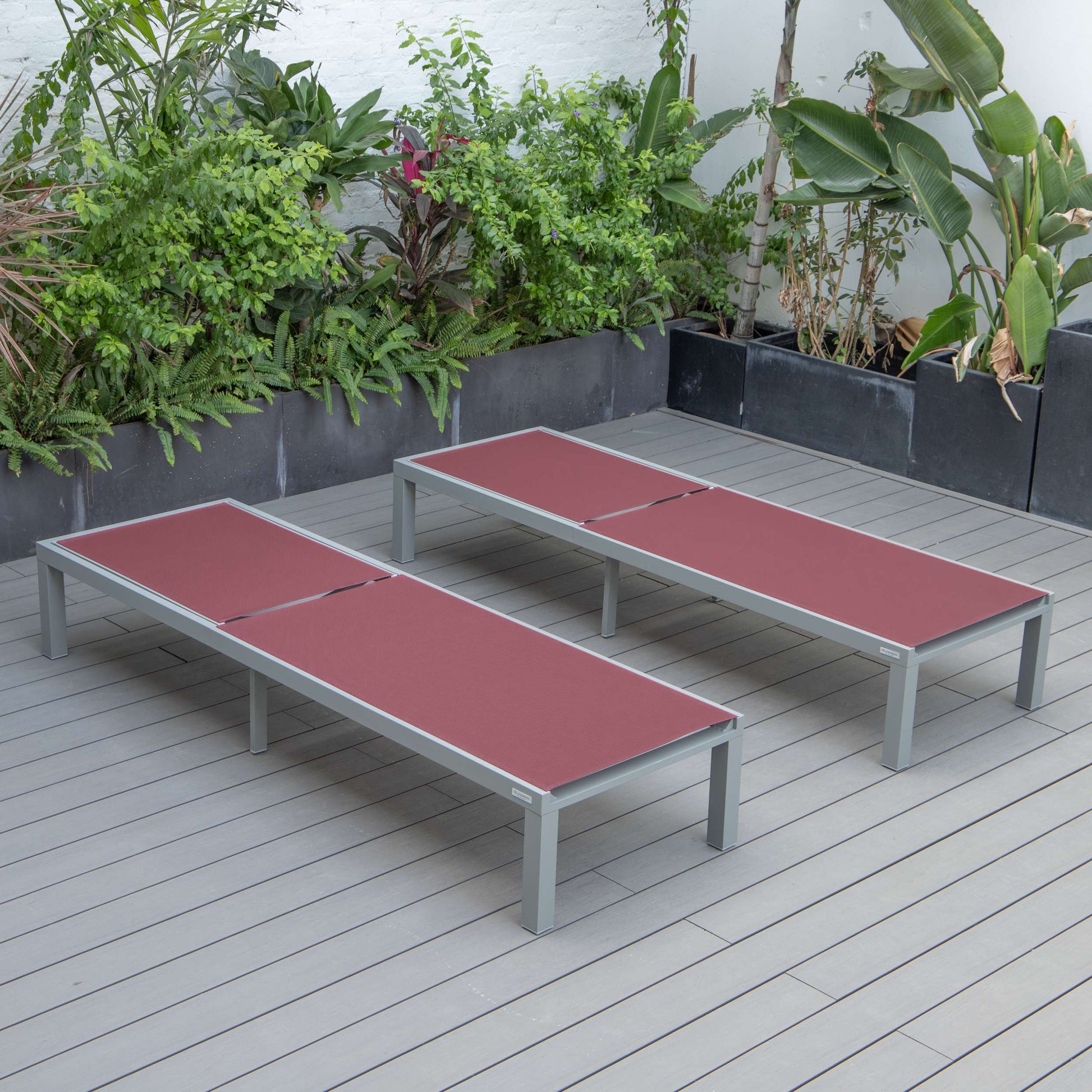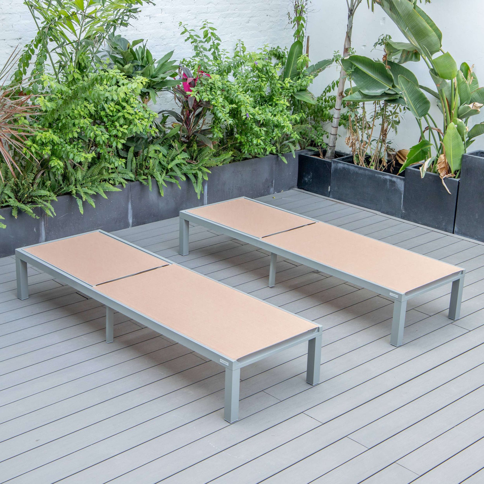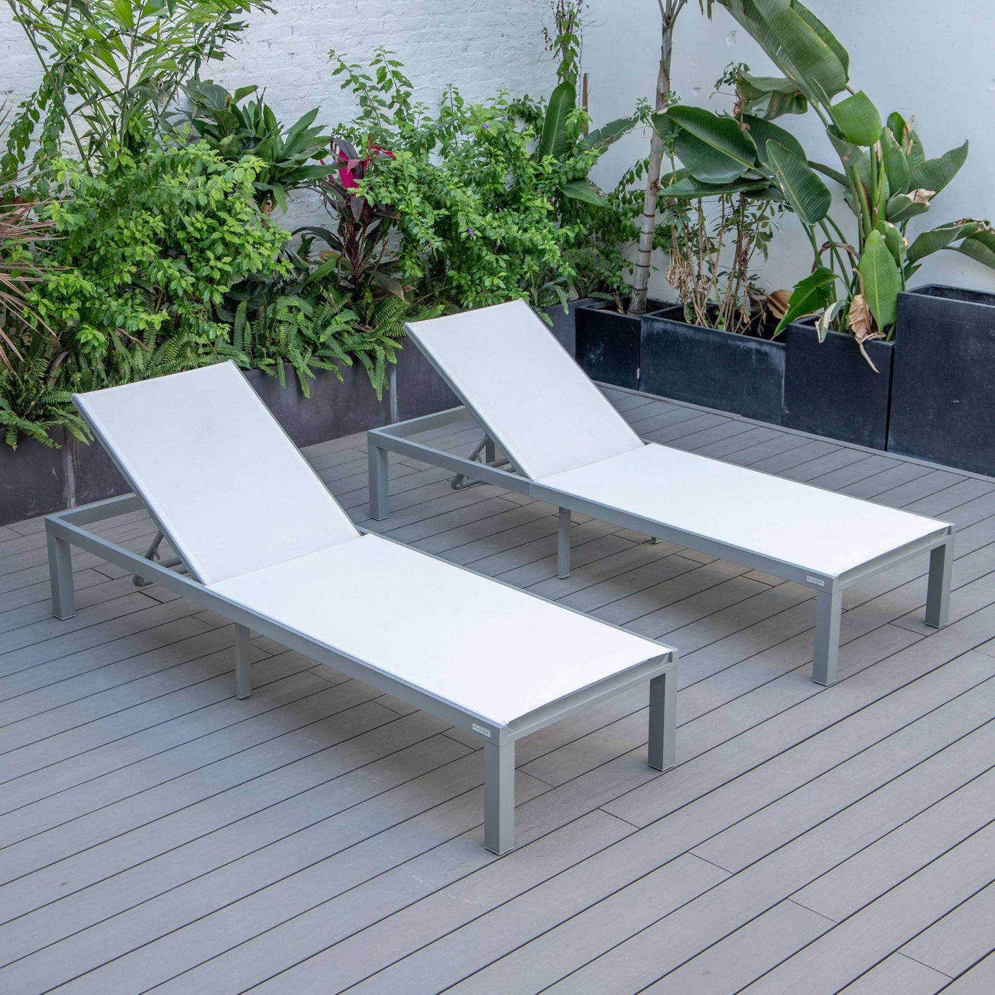 LeisureMod Marlin Patio Chaise Lounge Chair With Grey Aluminum Frame, Set of 2