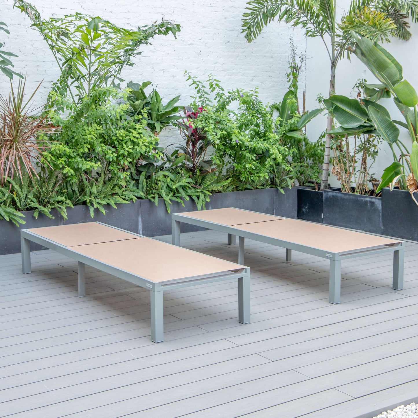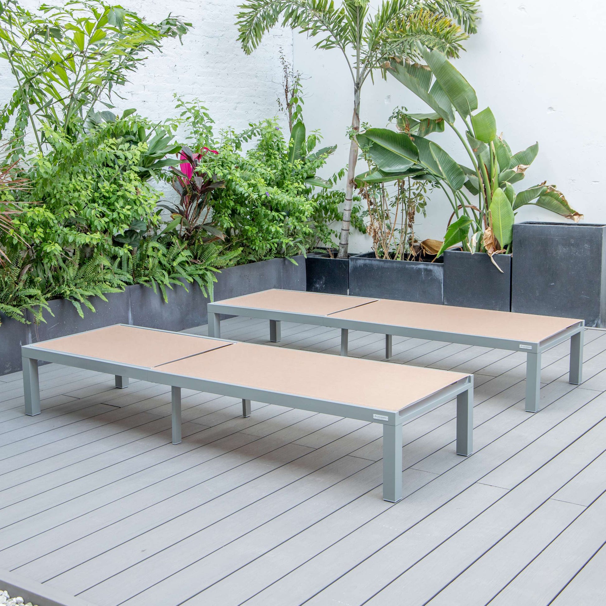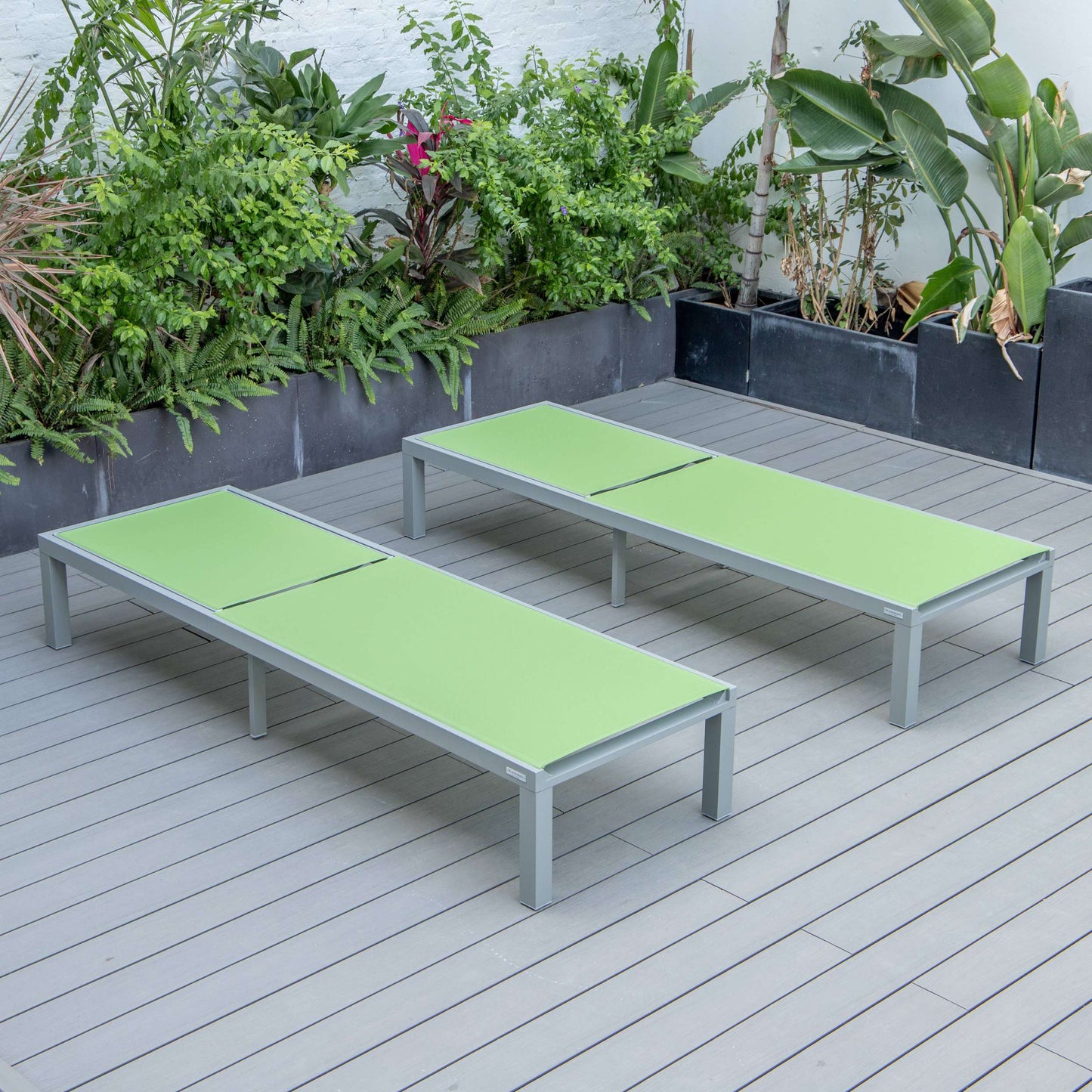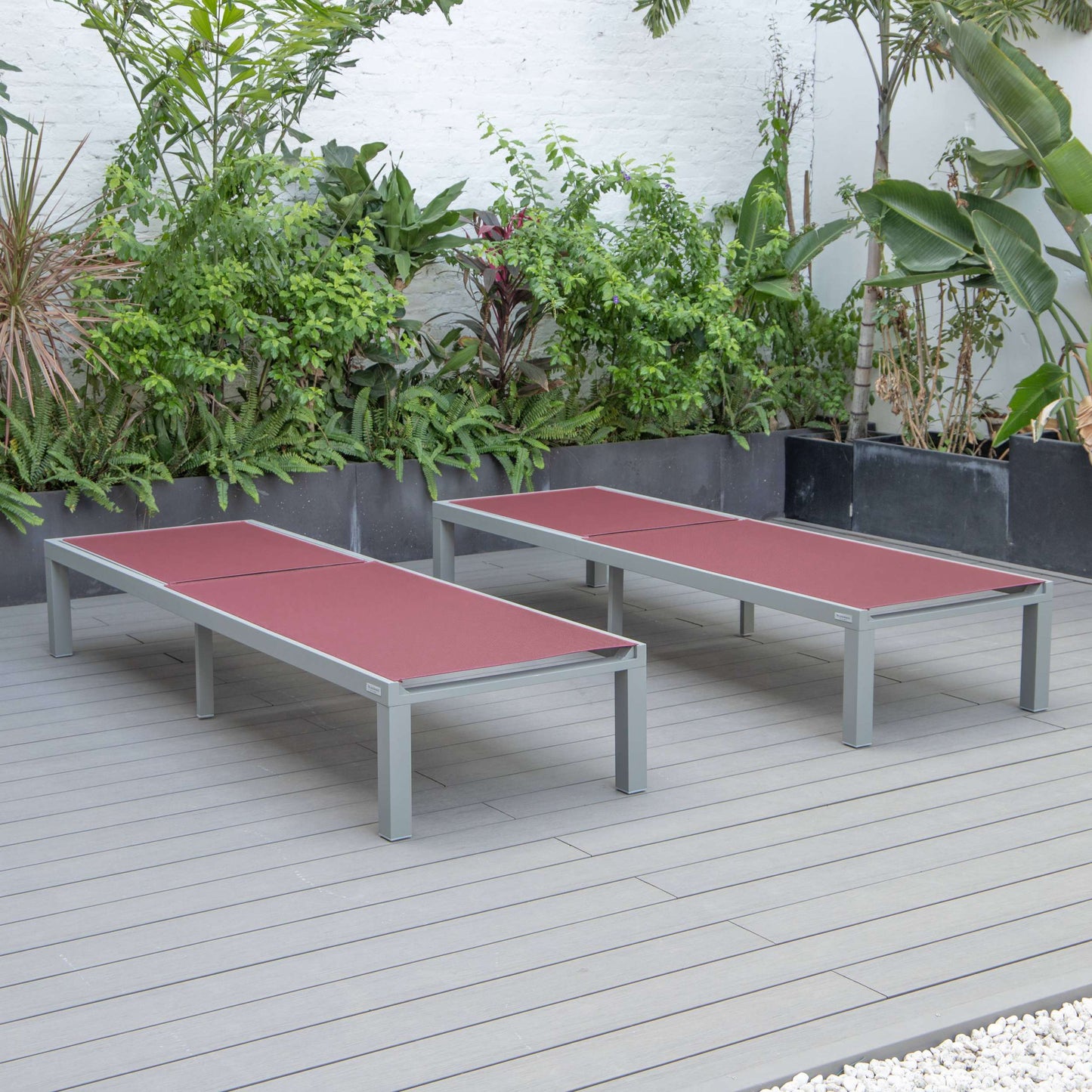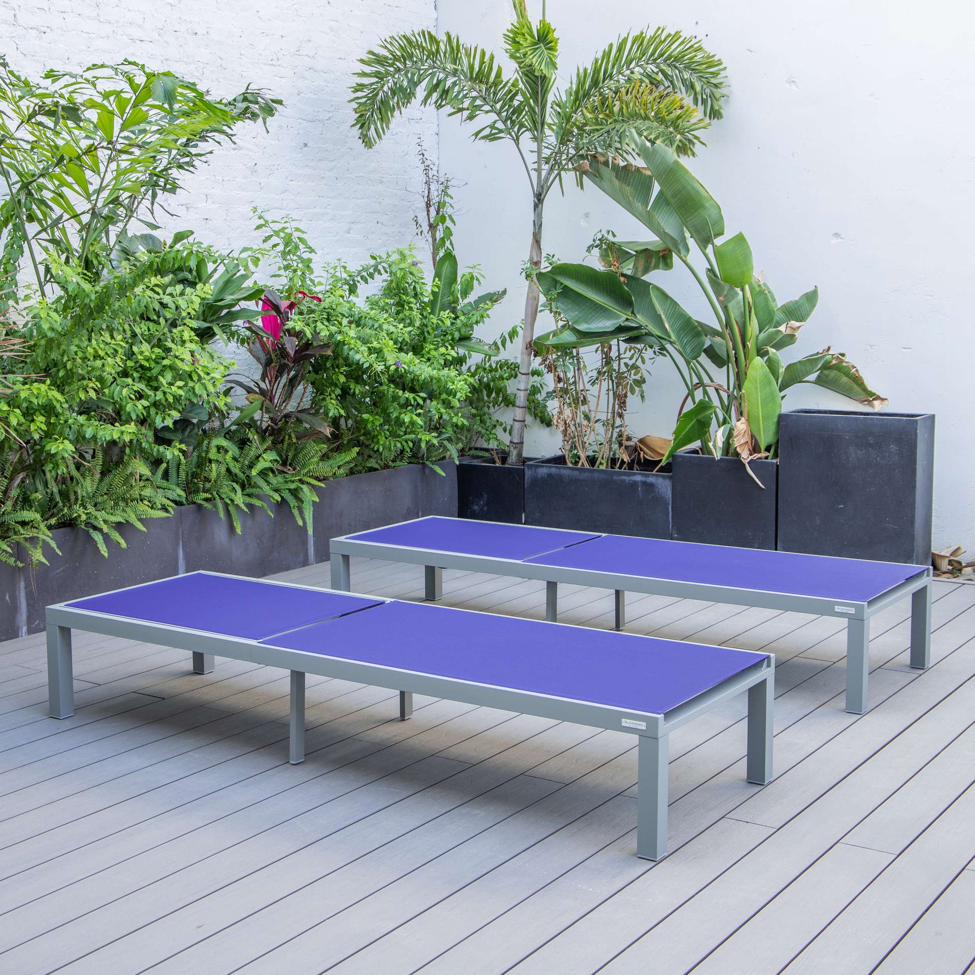 LeisureMod Marlin Patio Chaise Lounge Chair With Grey Aluminum Frame, Set of 2