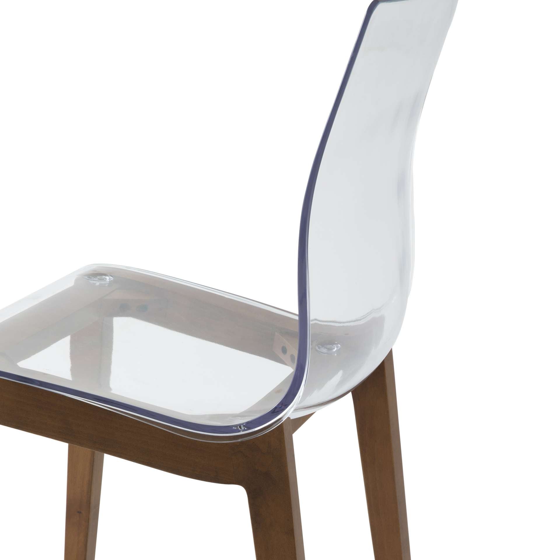 | This modern plastic chair has strong solid beech wood legs for maximum stability, with a natural wood grain color variation for a stylish modern dining chair look. |