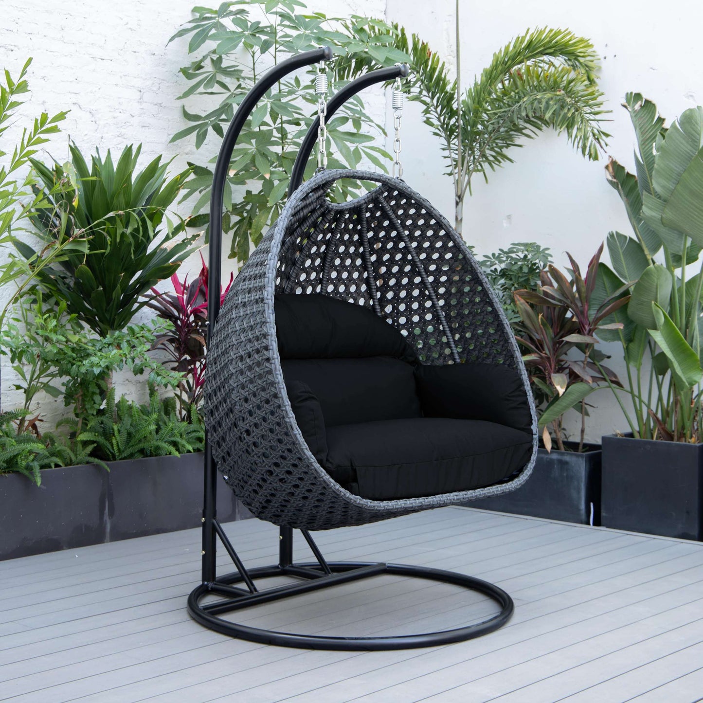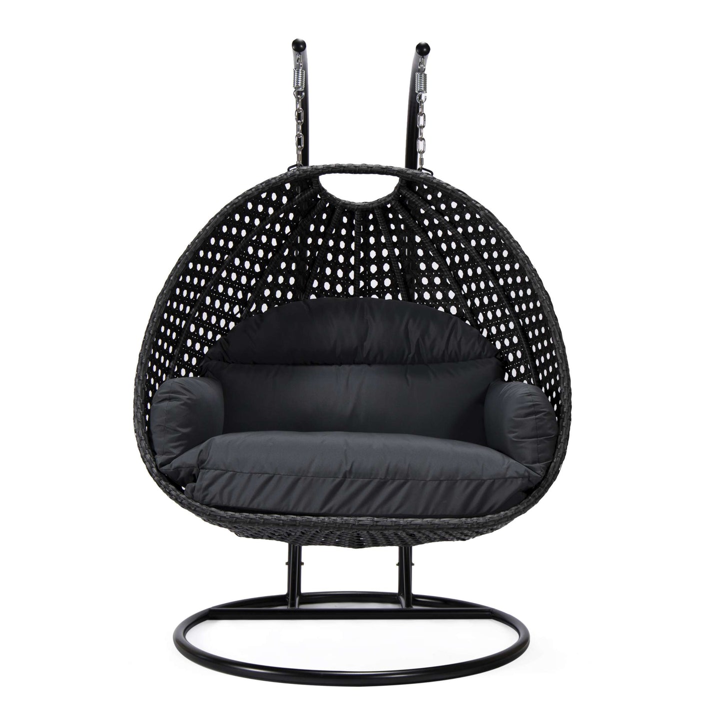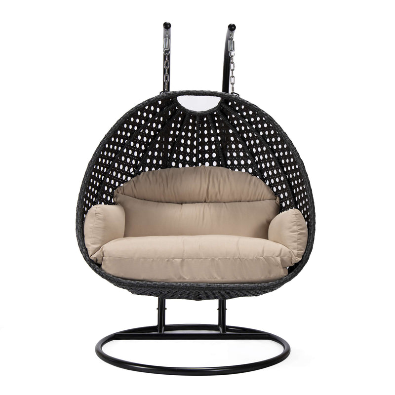 LeisureMod Mendoza Charcoal Wicker Hanging 2 person Egg Swing Chair