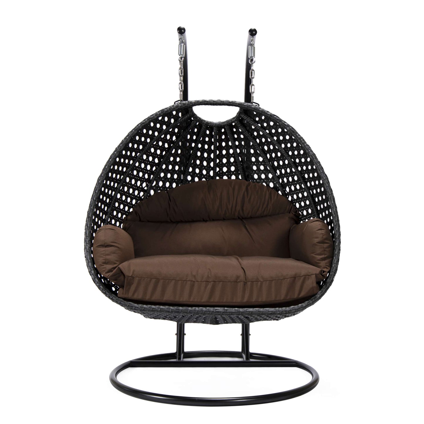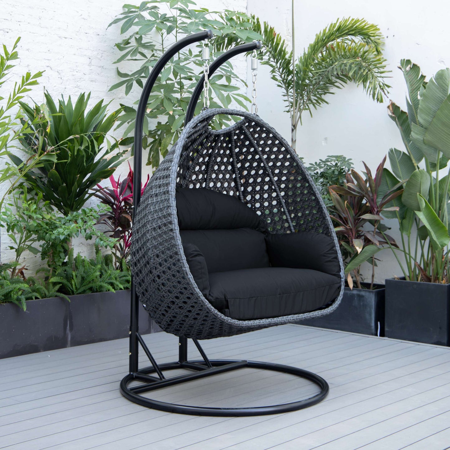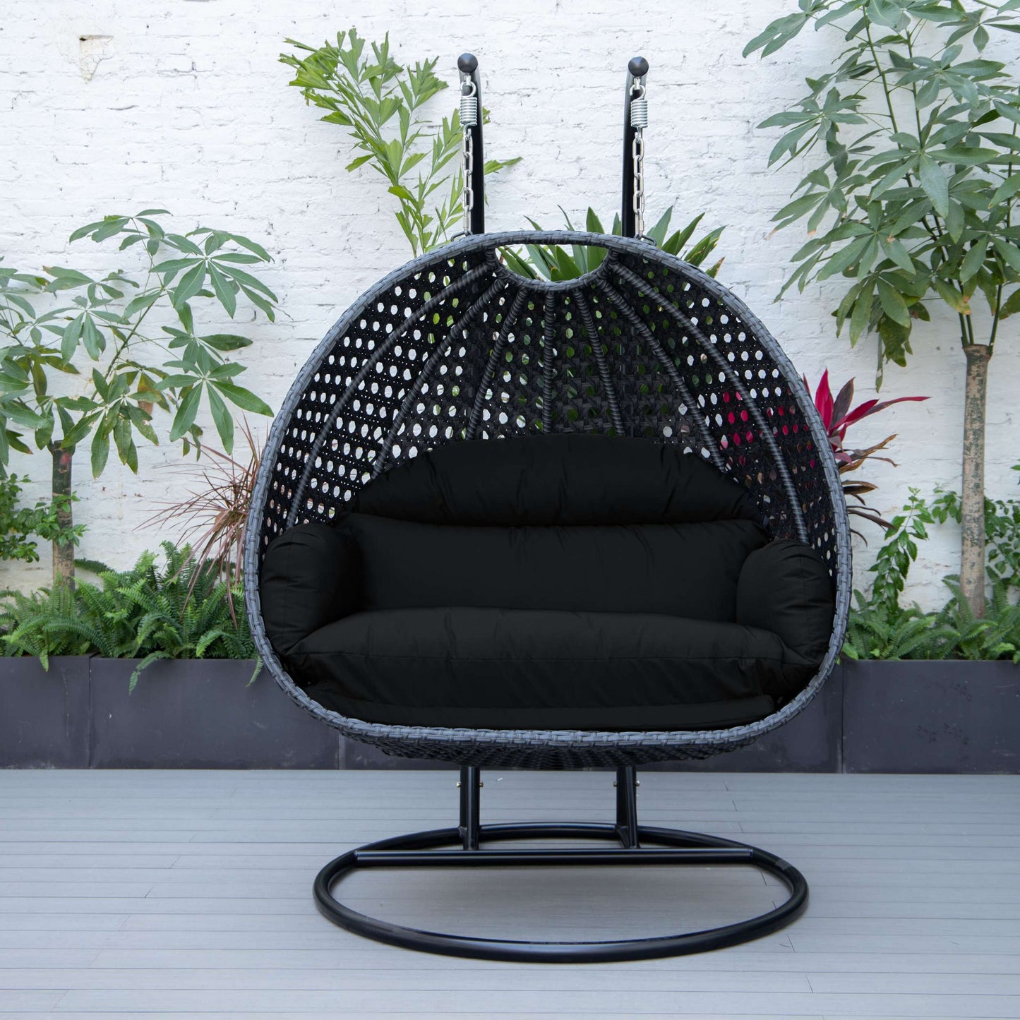 LeisureMod Mendoza Charcoal Wicker Hanging 2 person Egg Swing Chair
