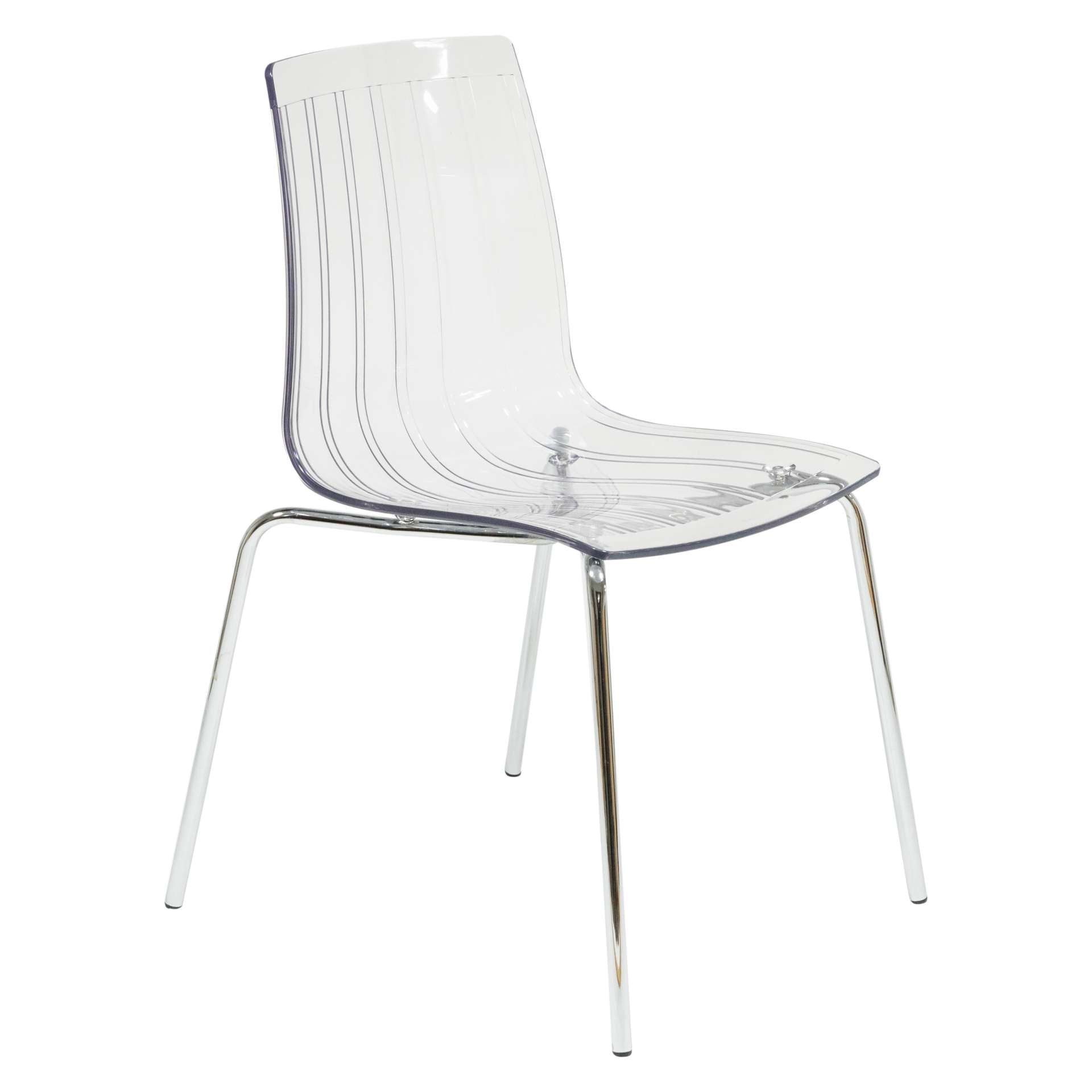 The Ralph Dining Chair is renowned for its sturdy craftsmanship—but even more for its distinctive pinstripe-like design. Each transparent seat brings a touch of sophistication to any space. Strong chrome legs shine with mirror-like mystique, while the chair’s