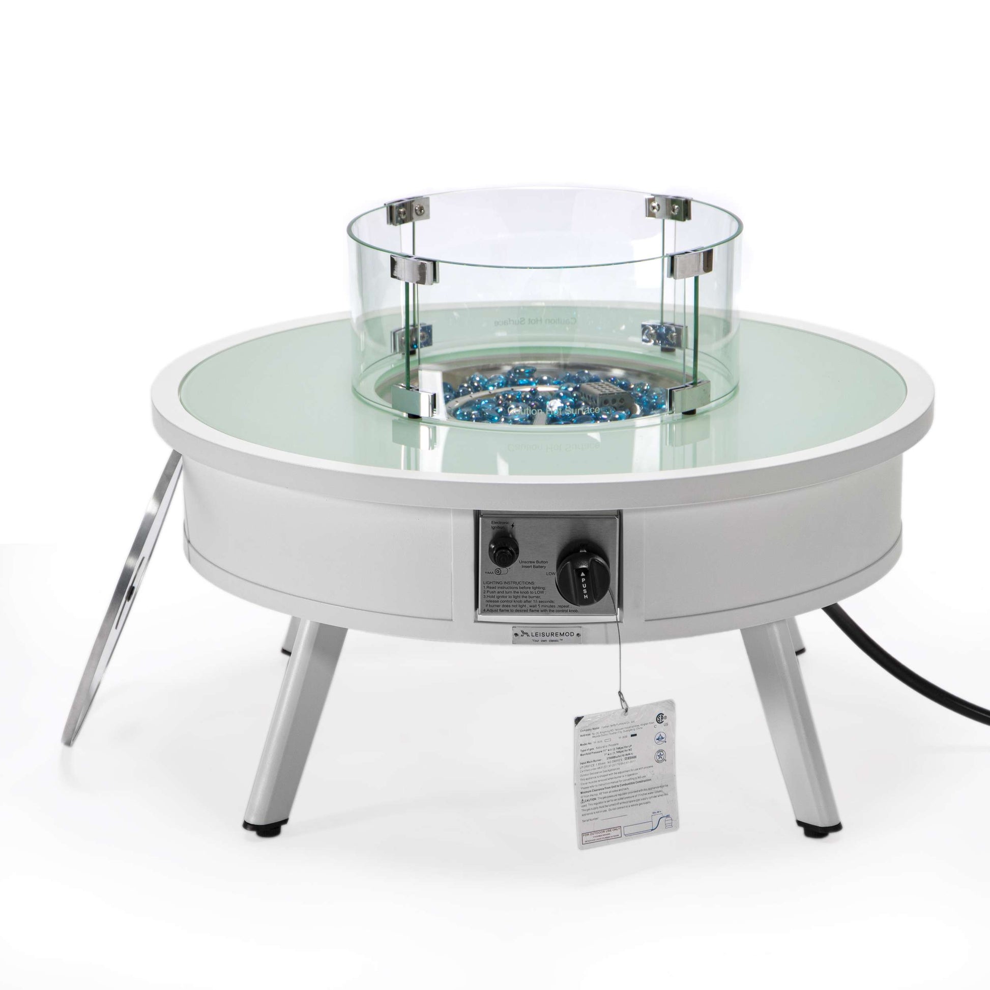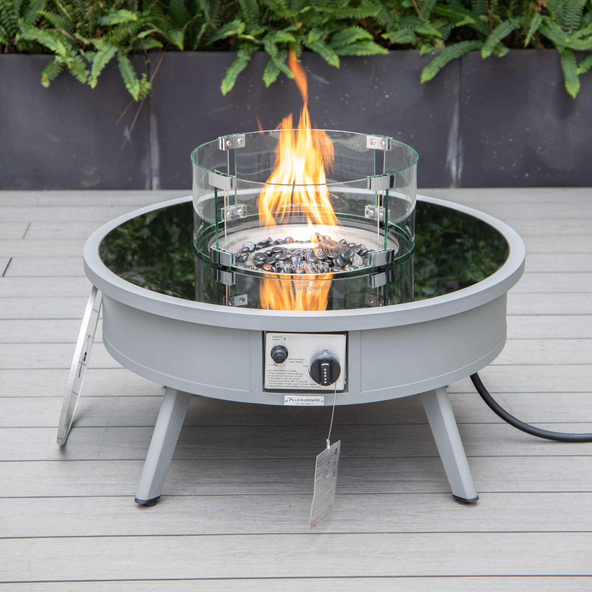Leisuremod Walbrooke Outdoor Patio Aluminum Round Fire Pit Side Table