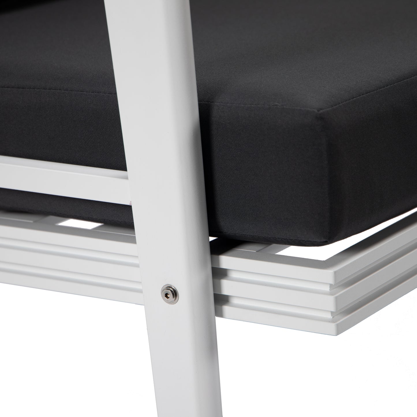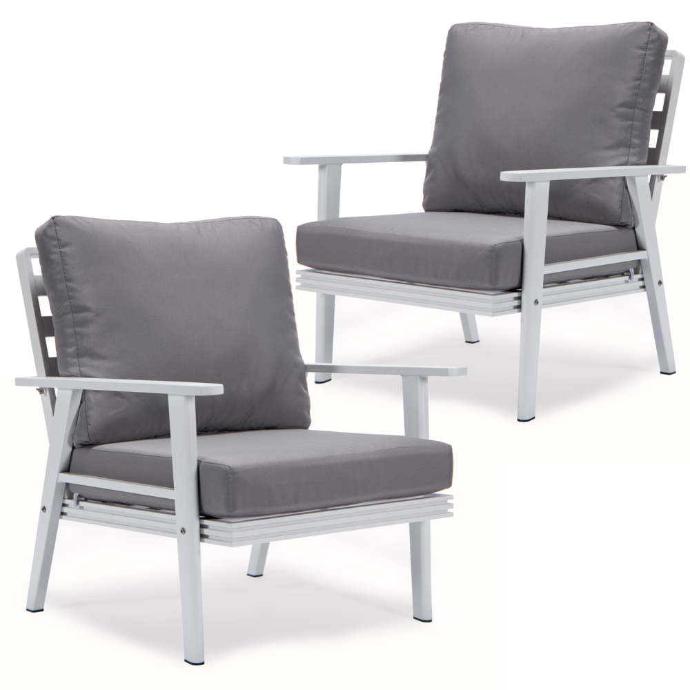 LeisureMod Walbrooke Outdoor Patio White Aluminum Armchairs With Cushions Set Of 2