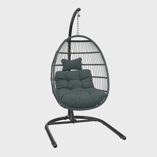 This fun egg-shaped porch swing chair has a folding feature for easy storage. The Egg chair fits 2 people comfortably and was built to last in the outdoors with its strong durable iron frame it will be perfect for all weathers. This unique swinging Chair is the perfect addition to any space outside, a backyard patio, deck, in a sun-room or garden, or near a pool, or outdoor Bar.