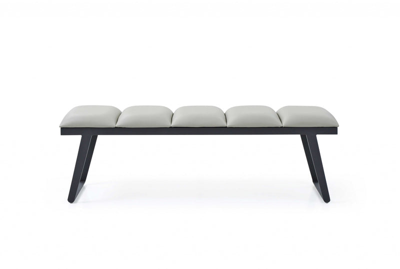 Light Gray and Black Upholstered Faux Leather Bench By Homeroots