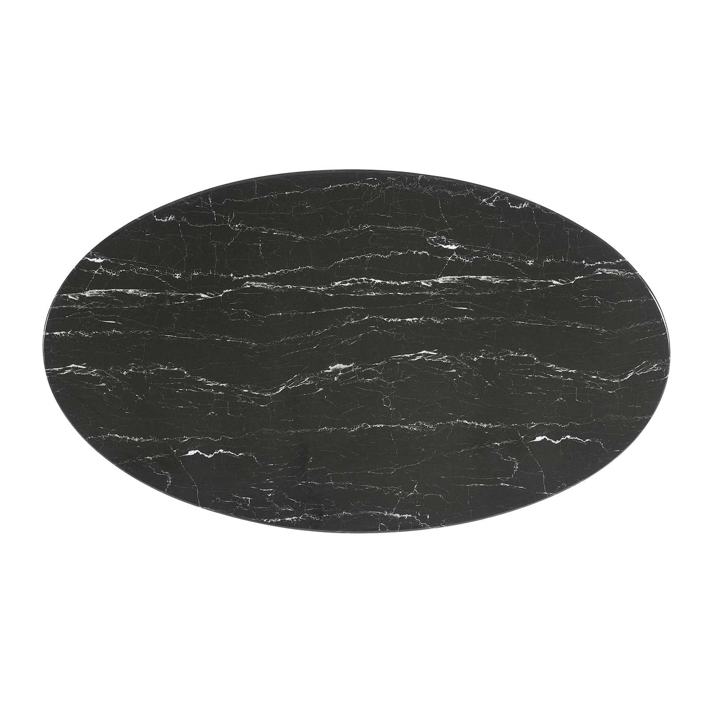 Reflecting a seamless organic shape and timeless form, the Lippa dining table has become a symbol of modernism for over the past 60 years. Before its release, homes were filled with clunky remnants of an industrial age long gone by. But in order to advance into the new world, homes first had to transition from the traditional square table, into a piece that connoted progress. The base and dimensions are true to the original specifications, while the table’s oval artificial marble top features a scratch-resistant finish and the metal tapered base features a black powder-coated finish.