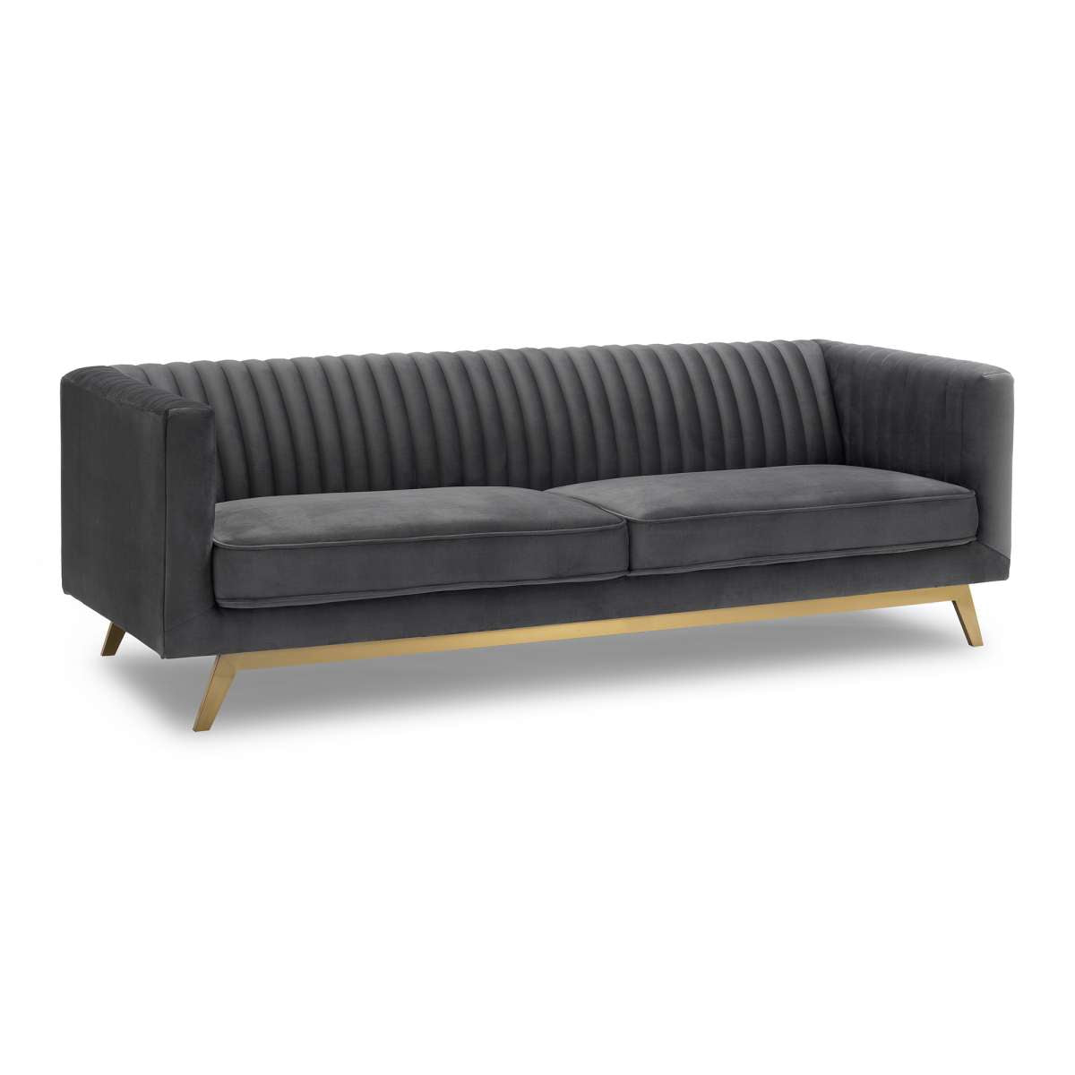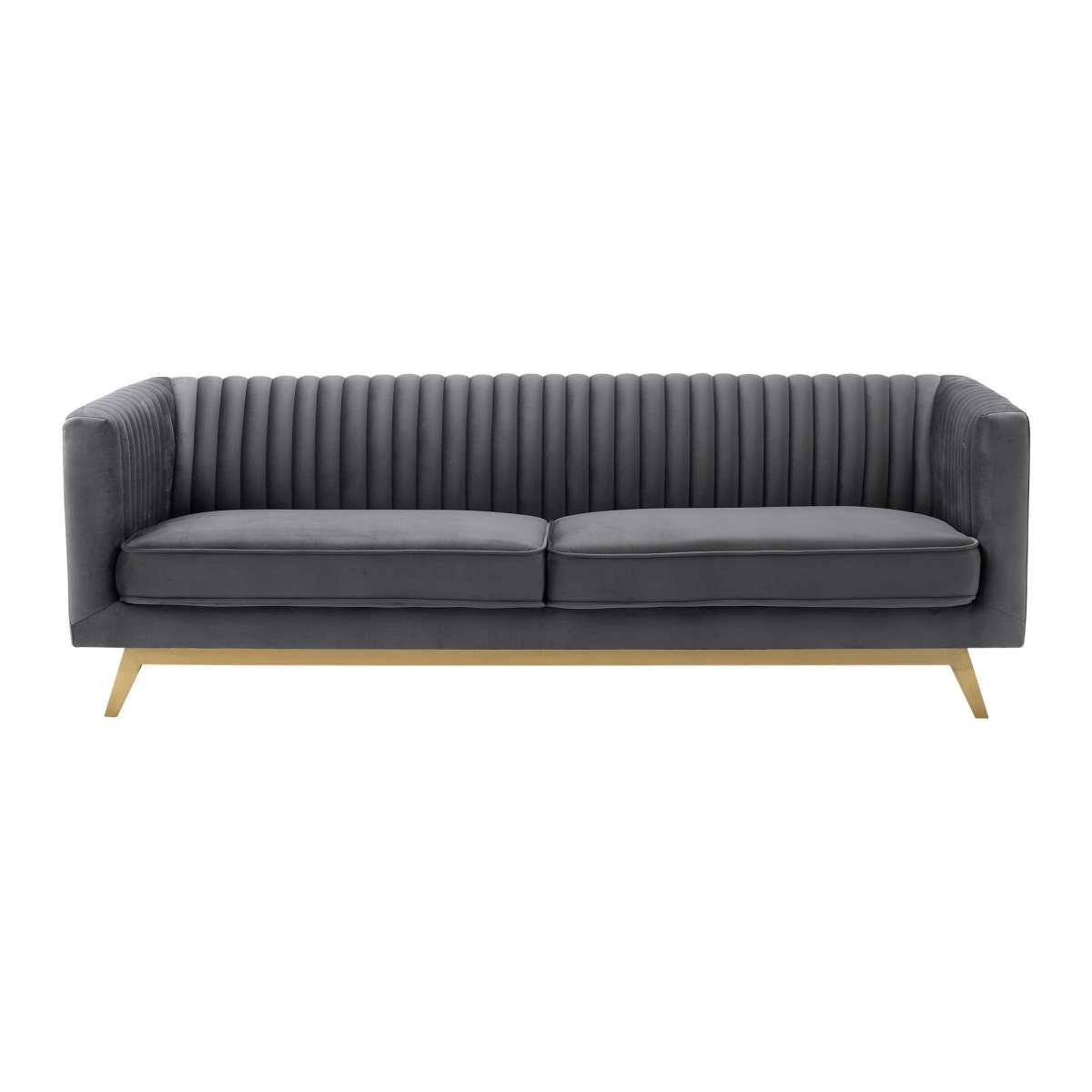 A modern take on Deco design, The Armen Living Liv Modern Velvet Sofa is an elegant statement piece with clean lines softened by subtle curves. Vertical, channel quilting is an outstanding design detail on this sofa, along with modern tapered matte gold legs and soft seat cushion. Sits perfectly on its own and as the complement to any living space. Lends itself to living room, lounge, den and office spaces with modern contemporary and urban design styles. The Armen Living Liv Modern Velvet Sofa is available in your choice of Beige, Blush or Dark Gray velvet upholstery.
