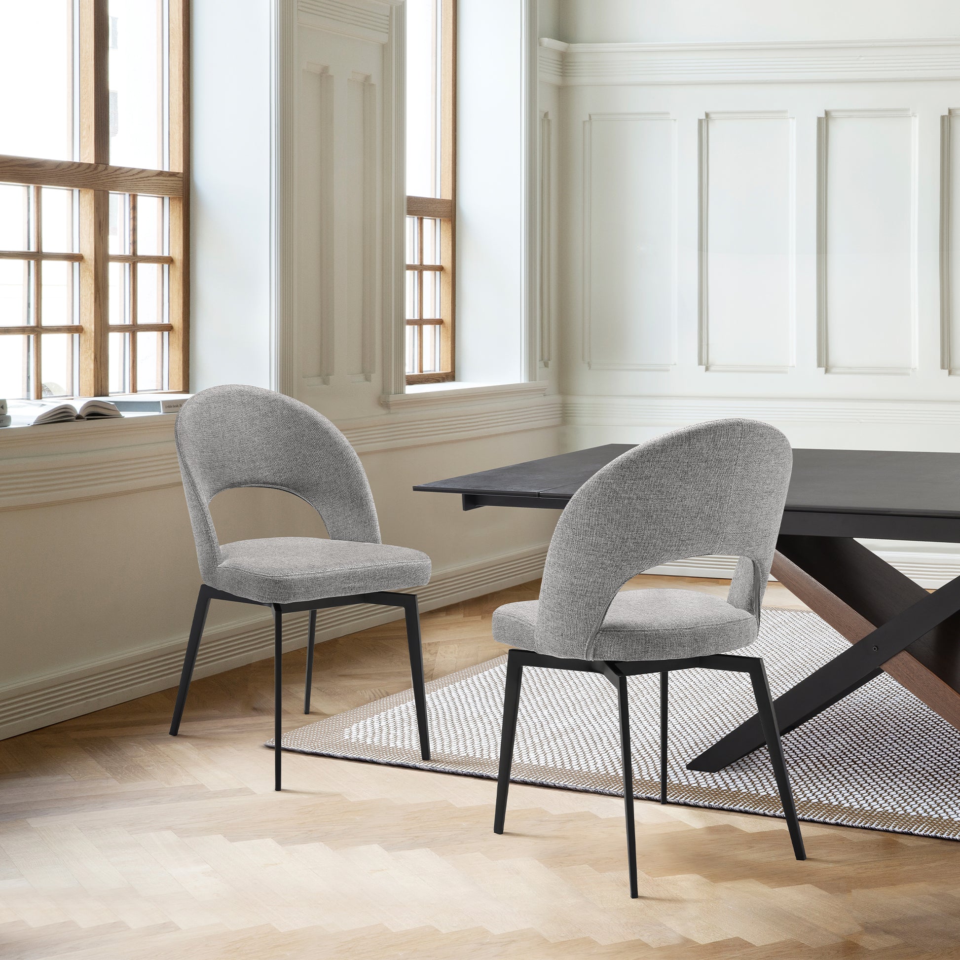 Lucia Swivel Upholstered Dining Chair in Gray Fabric with Black Metal Legs - Set of 2 By Armen Living