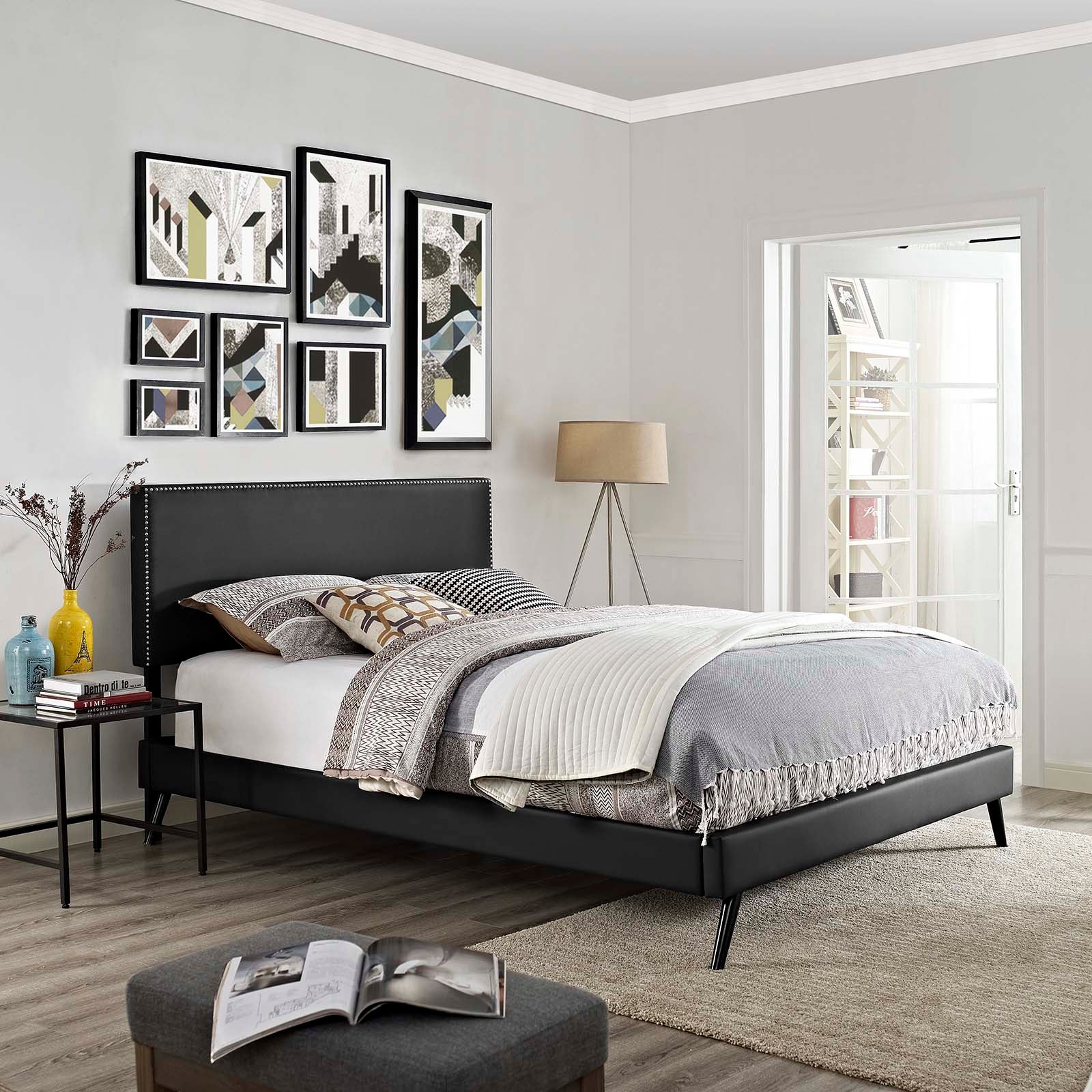 Macie King Vinyl Platform Bed With Round Splayed Legs By Modway - MOD-5964