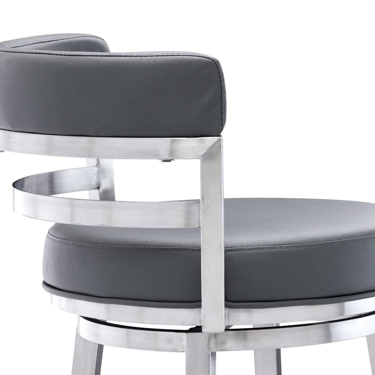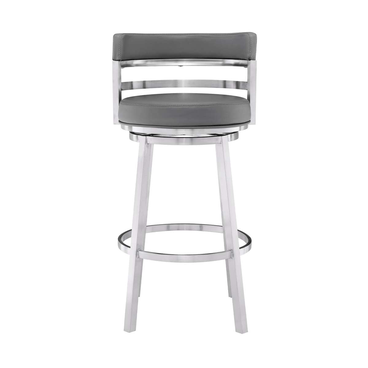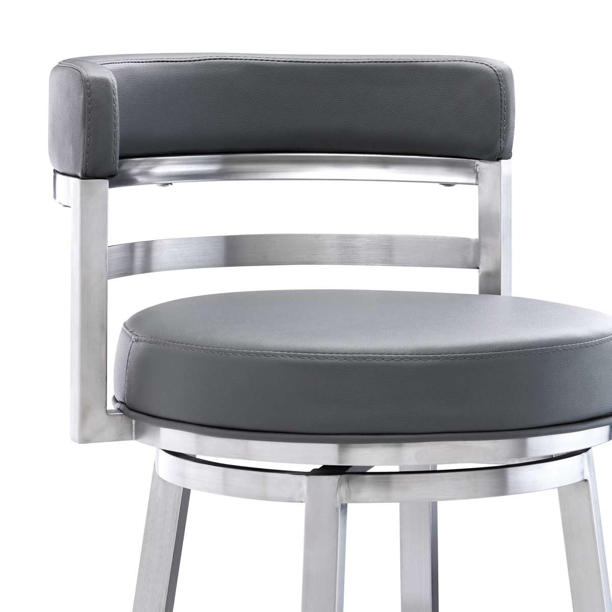 Madrid 30" Bar Height Swivel Grey Faux Leather and Brushed Stainless Steel Bar Stool By Armen Living