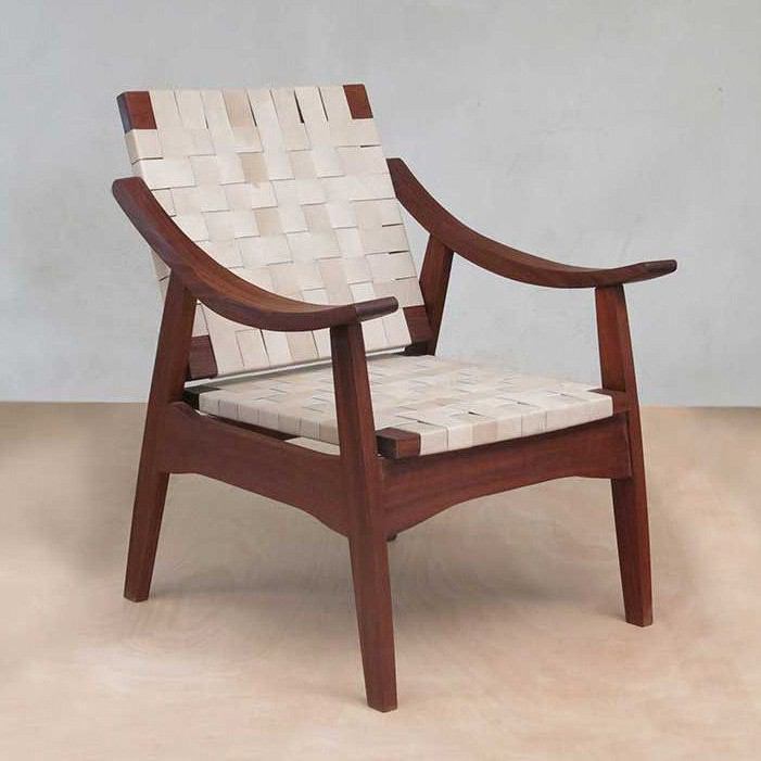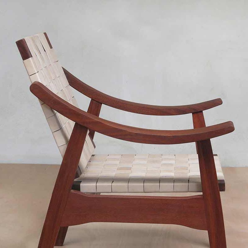 Unique leather lounge chair with comfortable and sleek mid-century design. Made from solid tropical hardwood and hand woven locally sourced quality leather. The frame comes in three choices of sustainably sourced tropical hardwoods. The seat and back are hand woven by local Nicaraguan artisans at our mill.