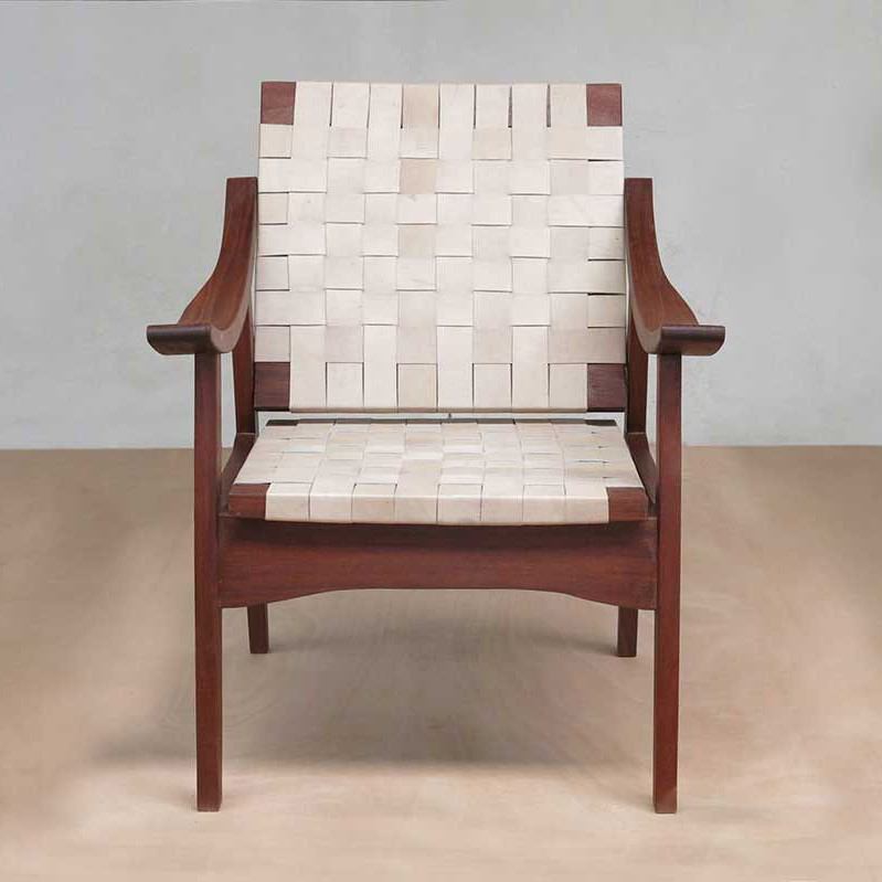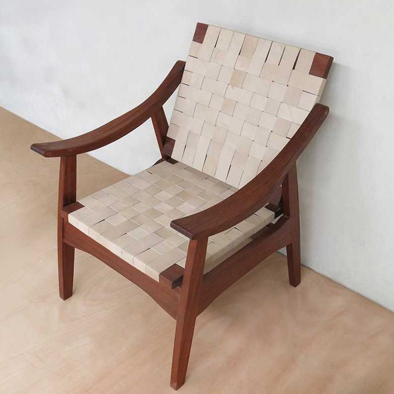 Masaya Leather Woven Lounge Chair- Barley Color... Masaya Leather Woven Lounge Chair- Barley Color Leather & Royal Mahogany Wood