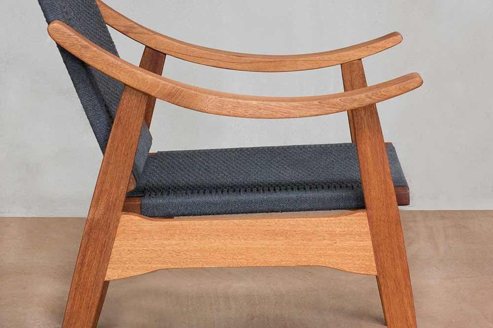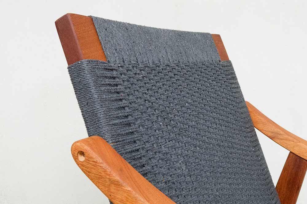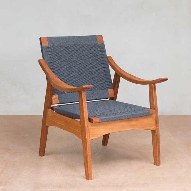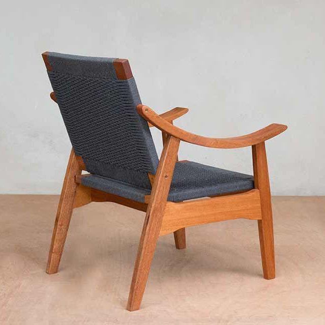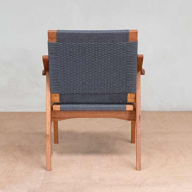 Our Izapa Arm Chair is a modern lounge chair design with handmade sustainably harvested hardwood frame and hand woven charcoal colored manila cotton seat and back. Very stylish.