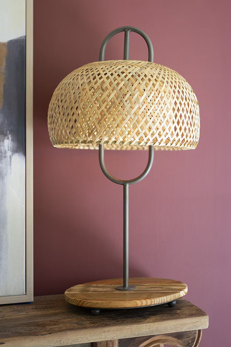 Metal And Wood Table Lamp With Woven Cane Lamp Shade By Kalalou