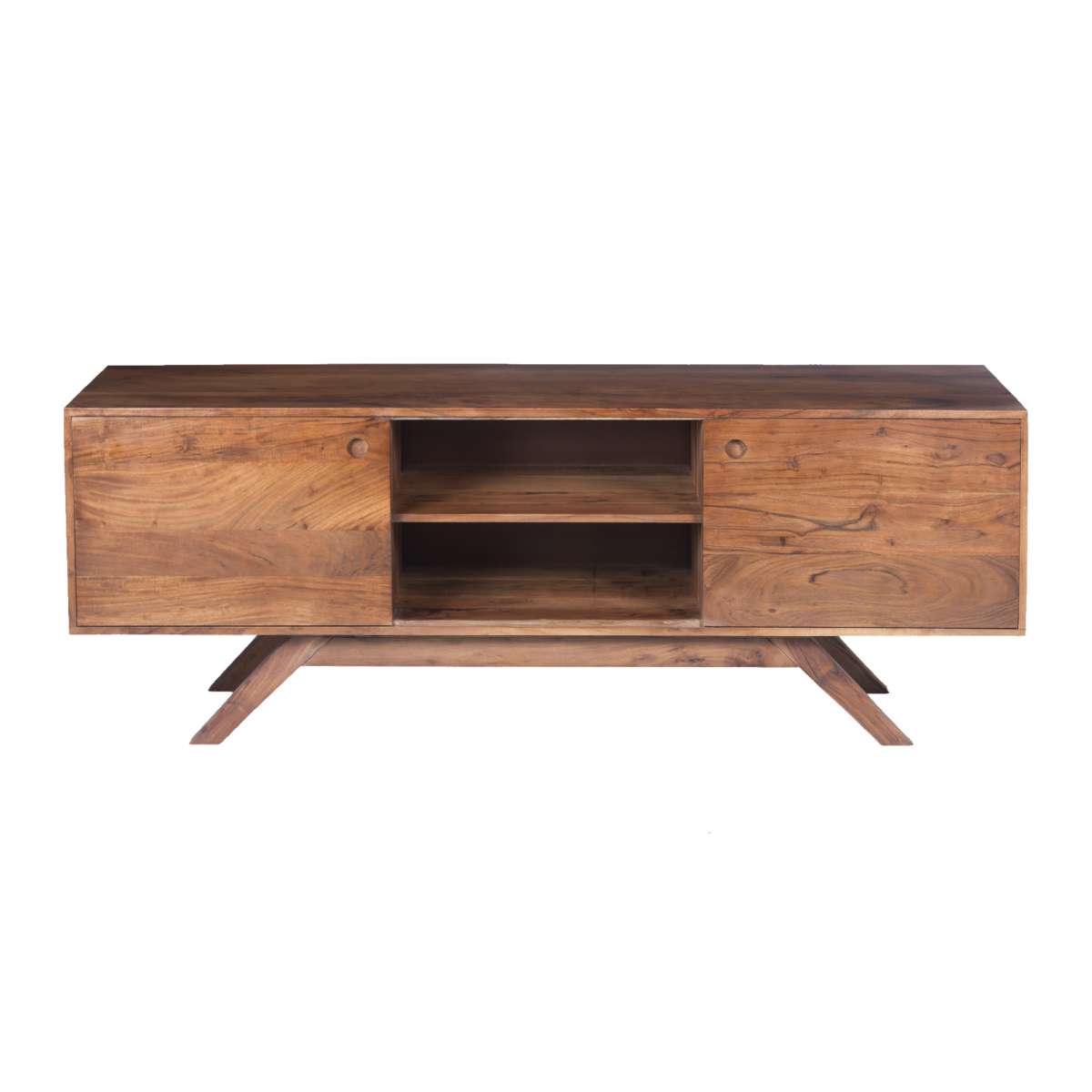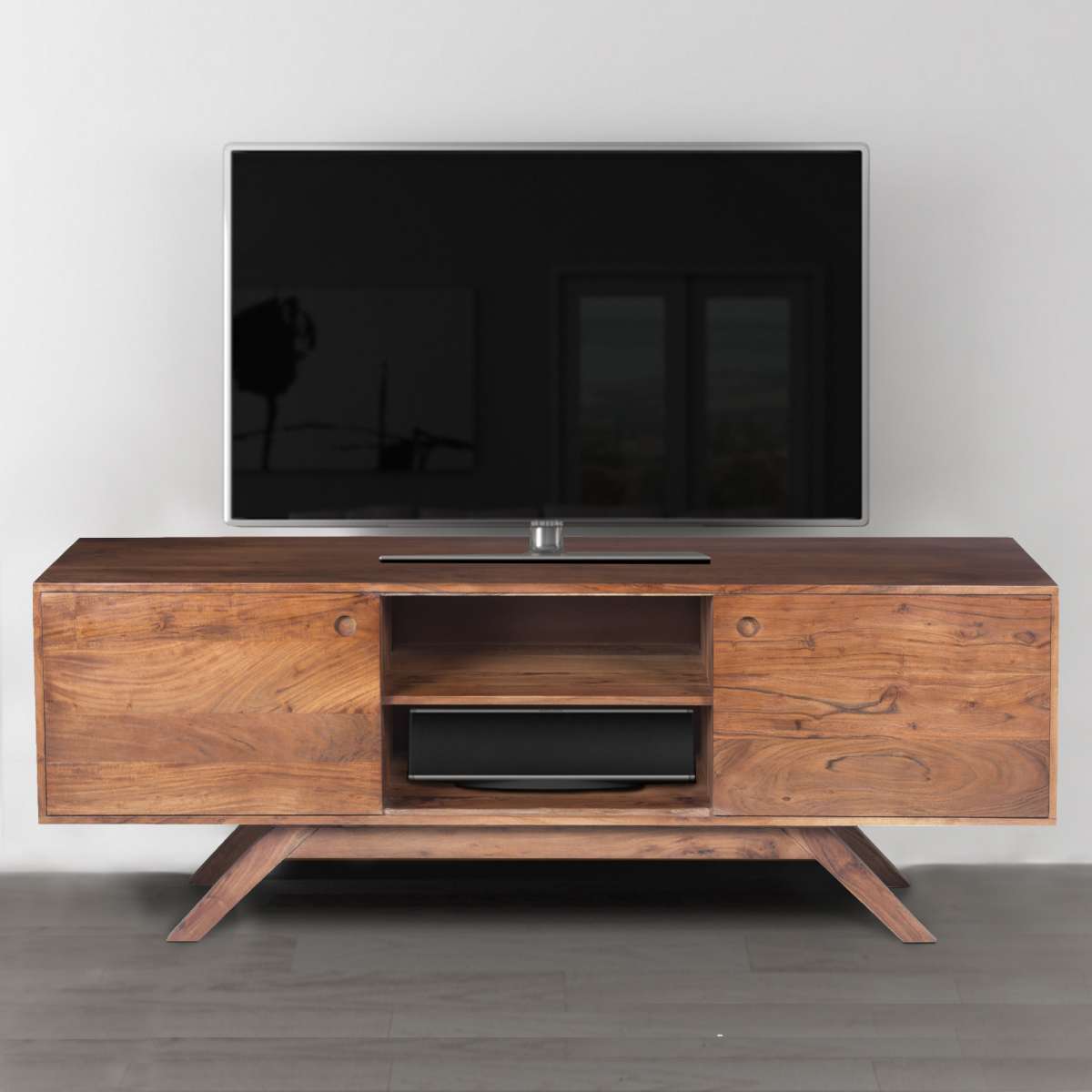 Mid Century Modern Acacia Wood Tv Unit With Wide Storage, Walnut Brown By Benzara