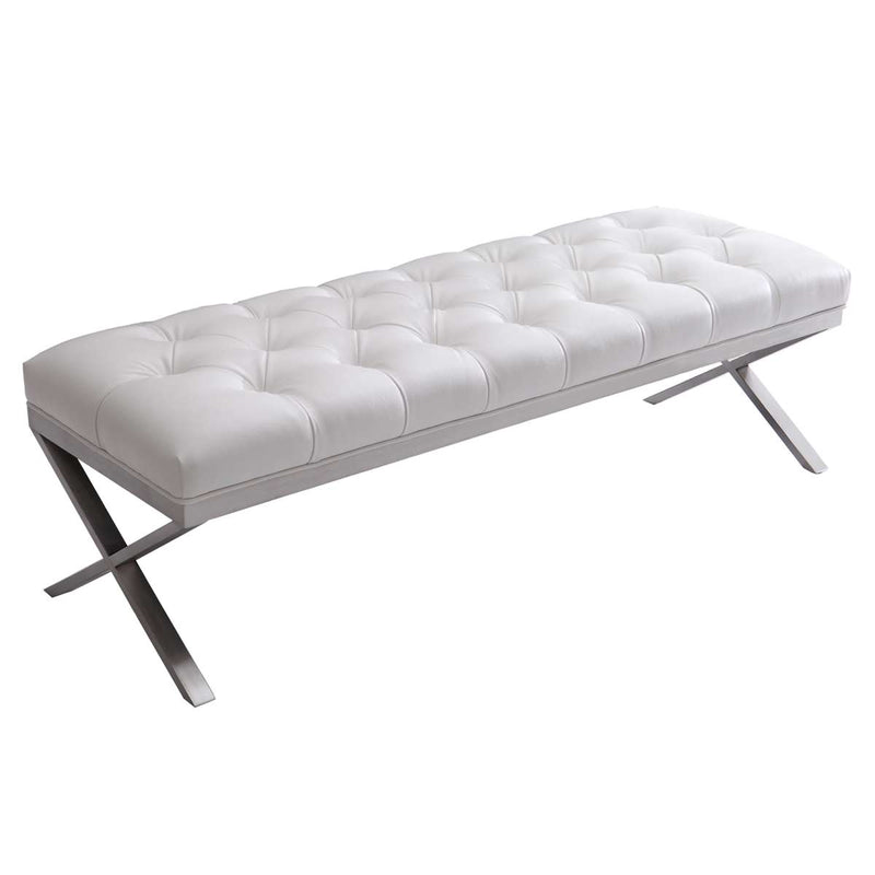 Our fancy clean lined tufted Milo bench in Gray fabric and brushed stainless steel legs in a crossed pattern is fashioned to make a statement in any home. It is functional and long enough to fit a few guests while entertaining in your home. It can be used in multiple parts of the home, and can serve both functional and decorative purposes. You can place this beautiful bench, in your bedroom, hallway, living room, den or even in your home office. The stainless steel cross leg creates balance and sturdiness to adequately support seated guests.