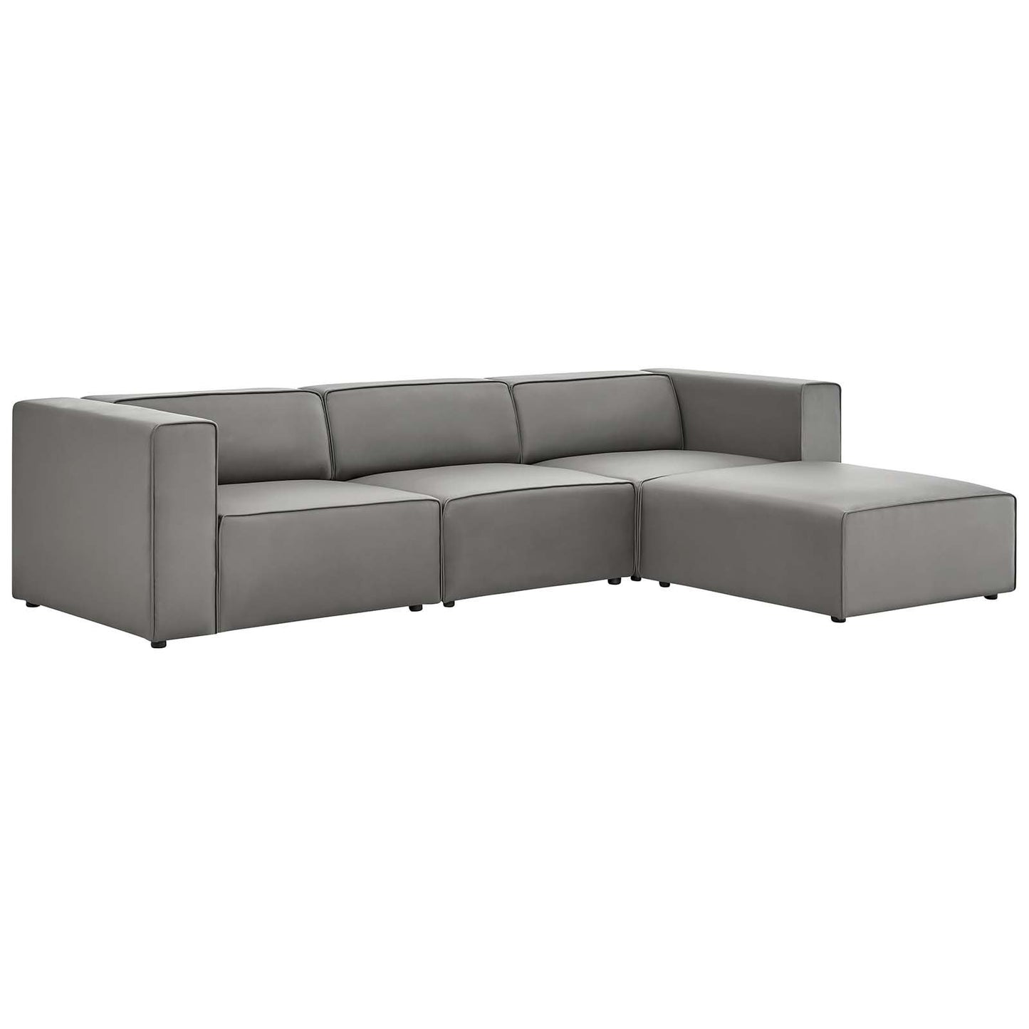 Kick back and relax with the Mingle Vegan Leather Sofa and Ottoman Set. Designed to wash away the hindrances that obstruct visual space, this three-seater sofa and ottoman come expansively designed with generous seating and dense foam padding that allows for just the right amount of giving. Mingle easily positions according to the needs of the moment and features rich vegan leather upholstery with elegant piping and plastic legs for steady support. Host animated living or lounge room get-togethers with a modular sectional seating assortment perfect for contemporary modern décors.
