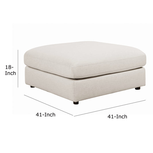 Fabric Upholstered Wooden Ottoman with Loose Cu... Fabric Upholstered Wooden Ottoman with Loose Cushion Seat and Small Feet, Beige By Benzara