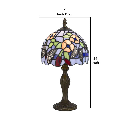 Metal Body Tiffany Table Lamp With Butterfly De... Metal Body Tiffany Table Lamp With Butterfly Design Shade, Multicolor By Benzara