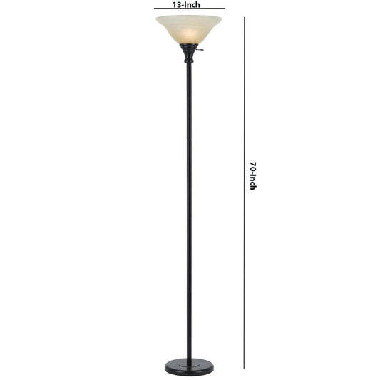 Metal Round 3 Way Torchiere Lamp With Frosted S... Metal Round 3 Way Torchiere Lamp With Frosted Shade, Dark Bronze And Gold By Benzara