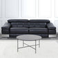 Just as how beauty lies in simplicity, the Modern Black Ceramic Round Coffee Table redefines how simple form and lines can derive the most elegant structure. Standing firmly on matte black powder coated tubular legs, the round wide black ceramic table top pairs elegantly with the sturdy base. Burnt orange veined lines accentuates the black glossy ceramic table adding an element of highlight that remarkably fits into any modern industrial styled home. 18" x 35" x 35"