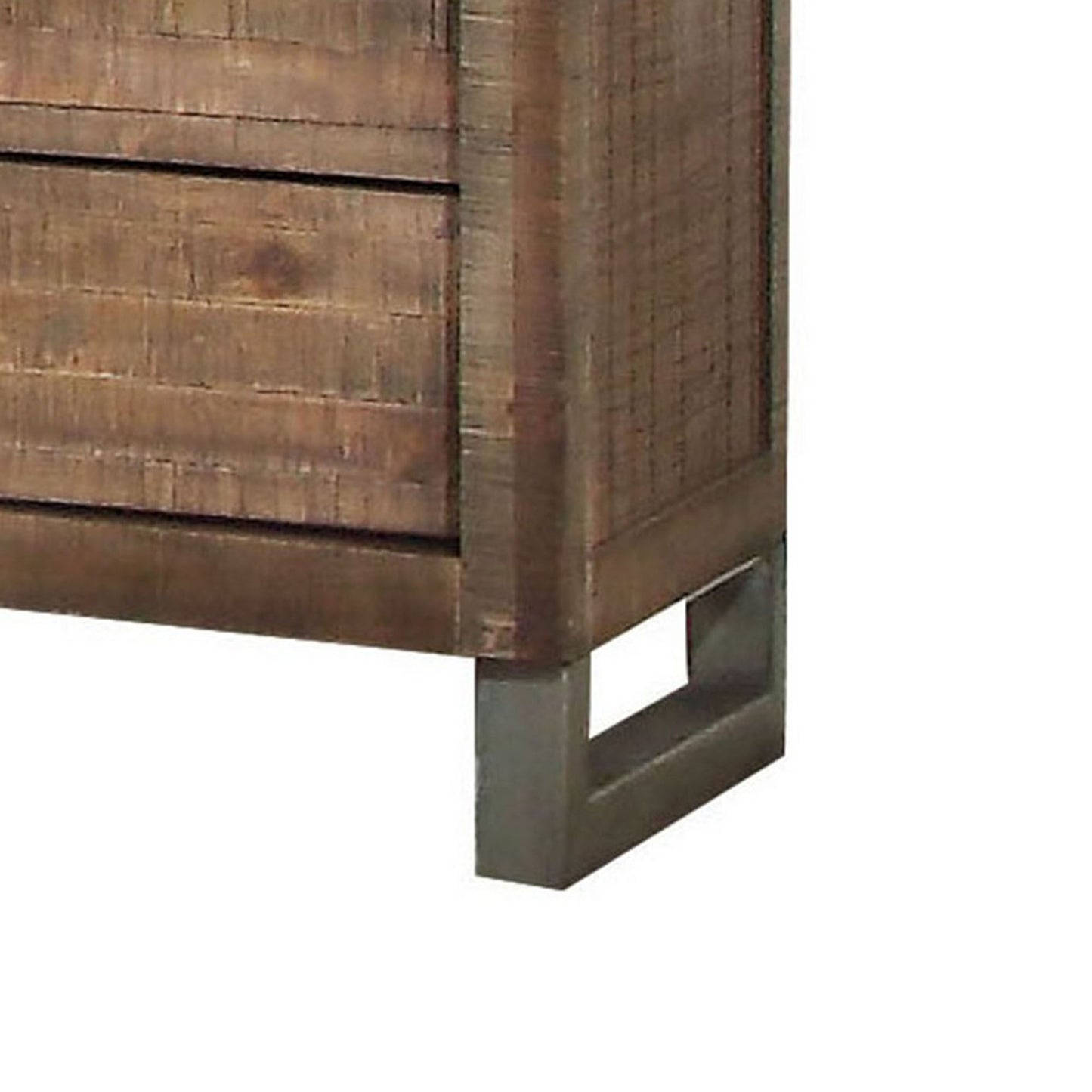This Andria collection was created to address a trending style in today's market while adding some transitional feel. It Features three Drawers with 3 metal ball bearing and finished in rustic brown. This nightstand is crafted from wood and supported by metal legs. With felt-lined top drawers, you can store your jewelry safe and Metal glide on drawers can make the drawers easy to open metal close.