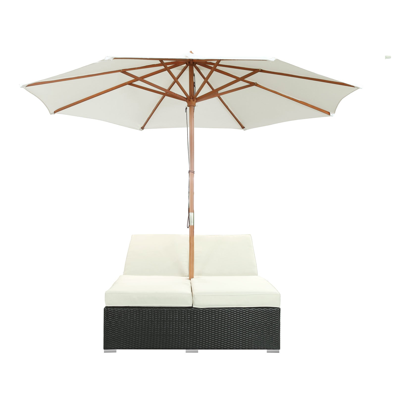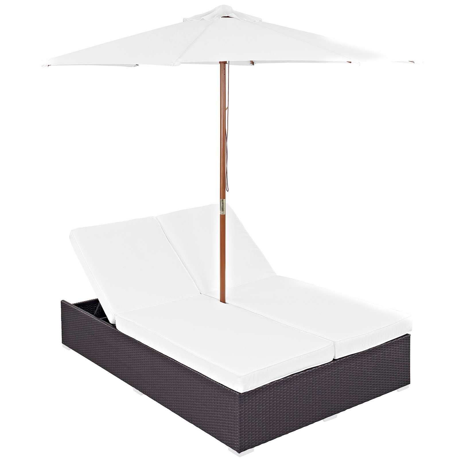 Life is full of first glimpses with the dual lounge Arrival set. Center your thoughts on uplifted efforts as you embark on pursuits both peaceful and grand. With recline adjustable chaise lounges, and an easy fold umbrella that provides shade from the sun, Arrival is a piece of stellar resolve. Arrival is comprised of UV resistant rattan, a powder-coated aluminum frame and all-weather cushions. The set is perfect for cafes, restaurants, patios, pool areas, hotels, resorts and other outdoor spaces.