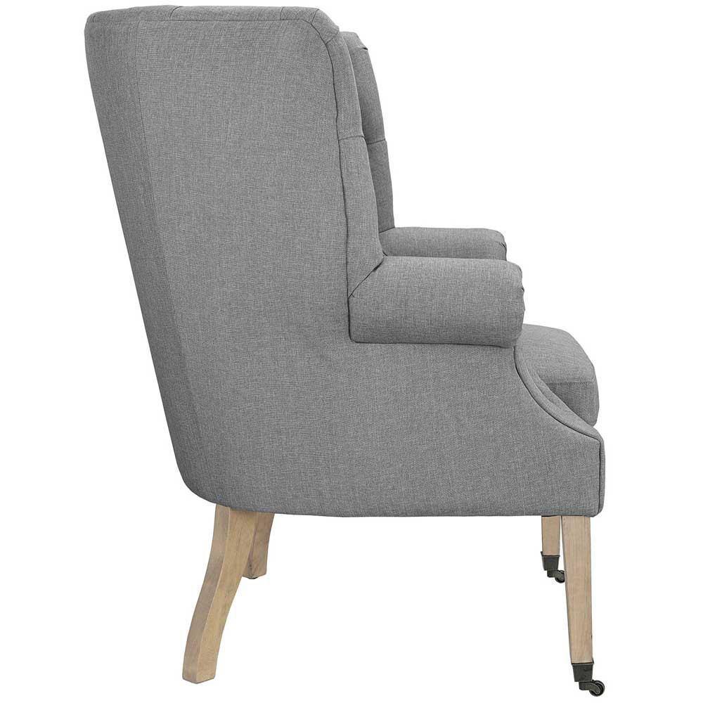 Experience the fine art of leisure with the Chart Lounge Chair. Luxuriously tufted with rolled arms and supportive back, Chart also comes outfitted with front leg casters for easy maneuverability. Always ready for action, Chart is a beautiful accent piece upholstered in fine polyester, dense foam padding, natural wood legs, and an esteemable appeal for vintage, rustic, cabin, contemporary, global, and other eclectic spaces.