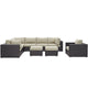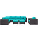 Gather stages of sensitivity with the Convene Outdoor Sectional series. Made with a synthetic rattan weave and a powder-coated aluminum frame, Convene is a versatile outdoor furniture set that shifts and combines according to the spontaneous needs of the moment. Outfitted with all-weather fabric cushions, leave a positive impression on friends and family while enhancing your patio, backyard, or poolside repast in this series of palpable distinction. This installment of the series is an Outdoor Patio Sectional Sofa Set.