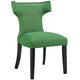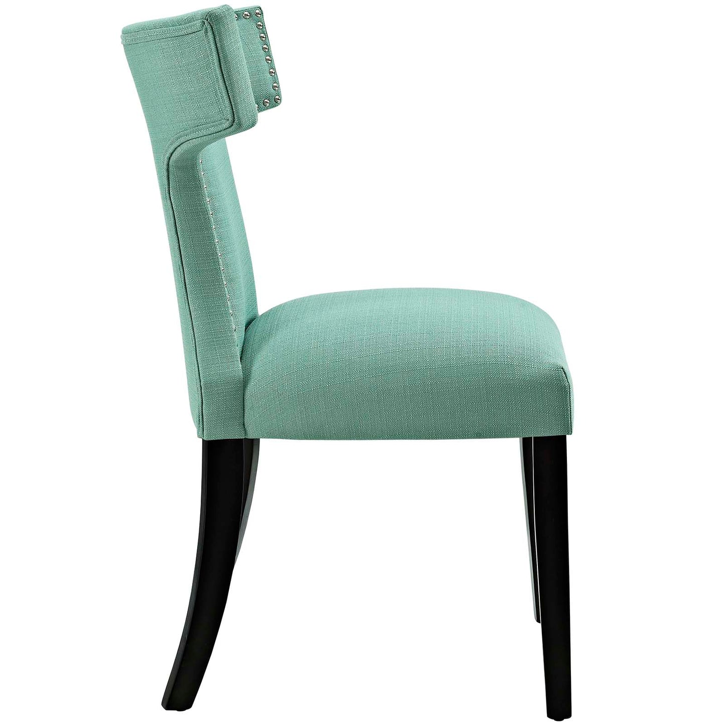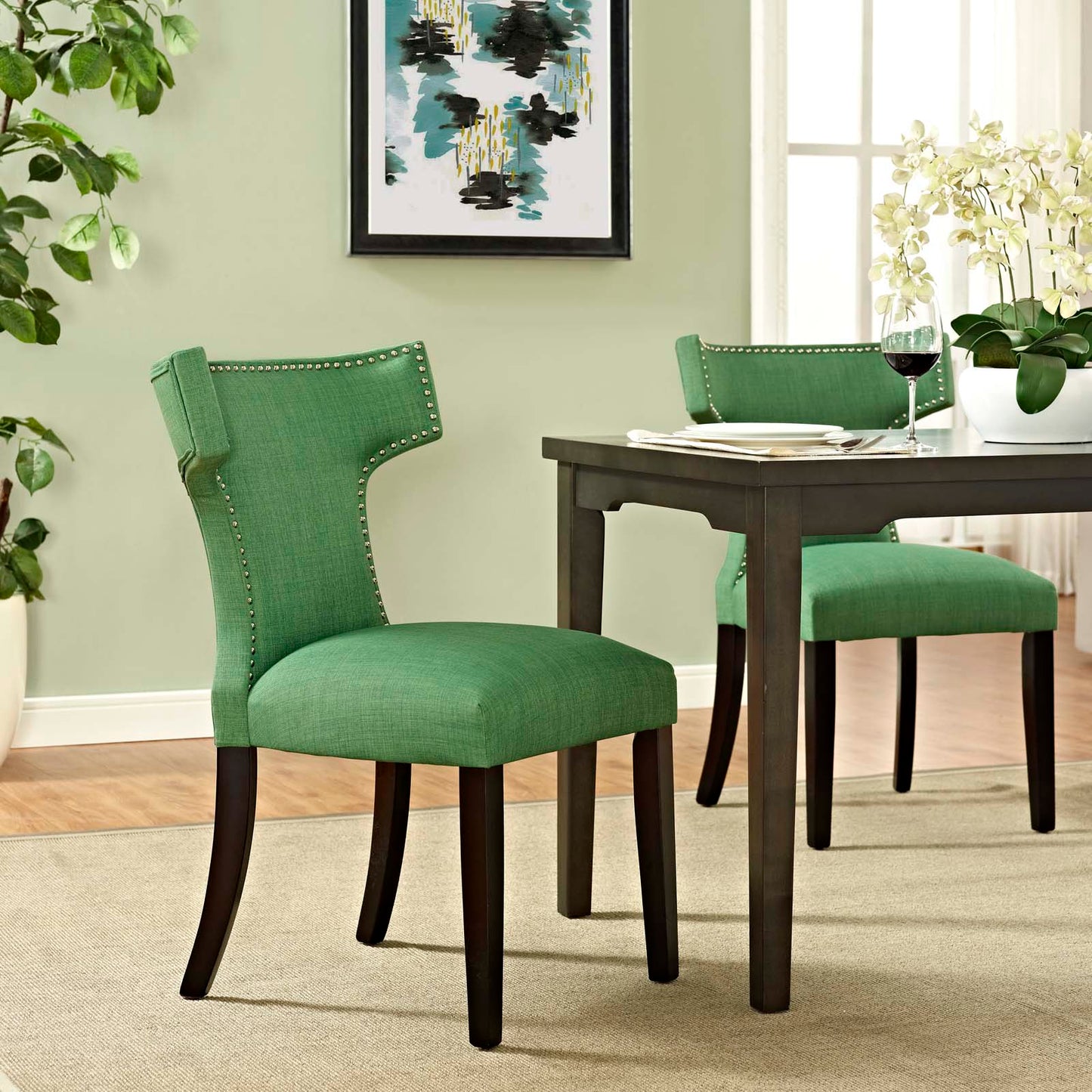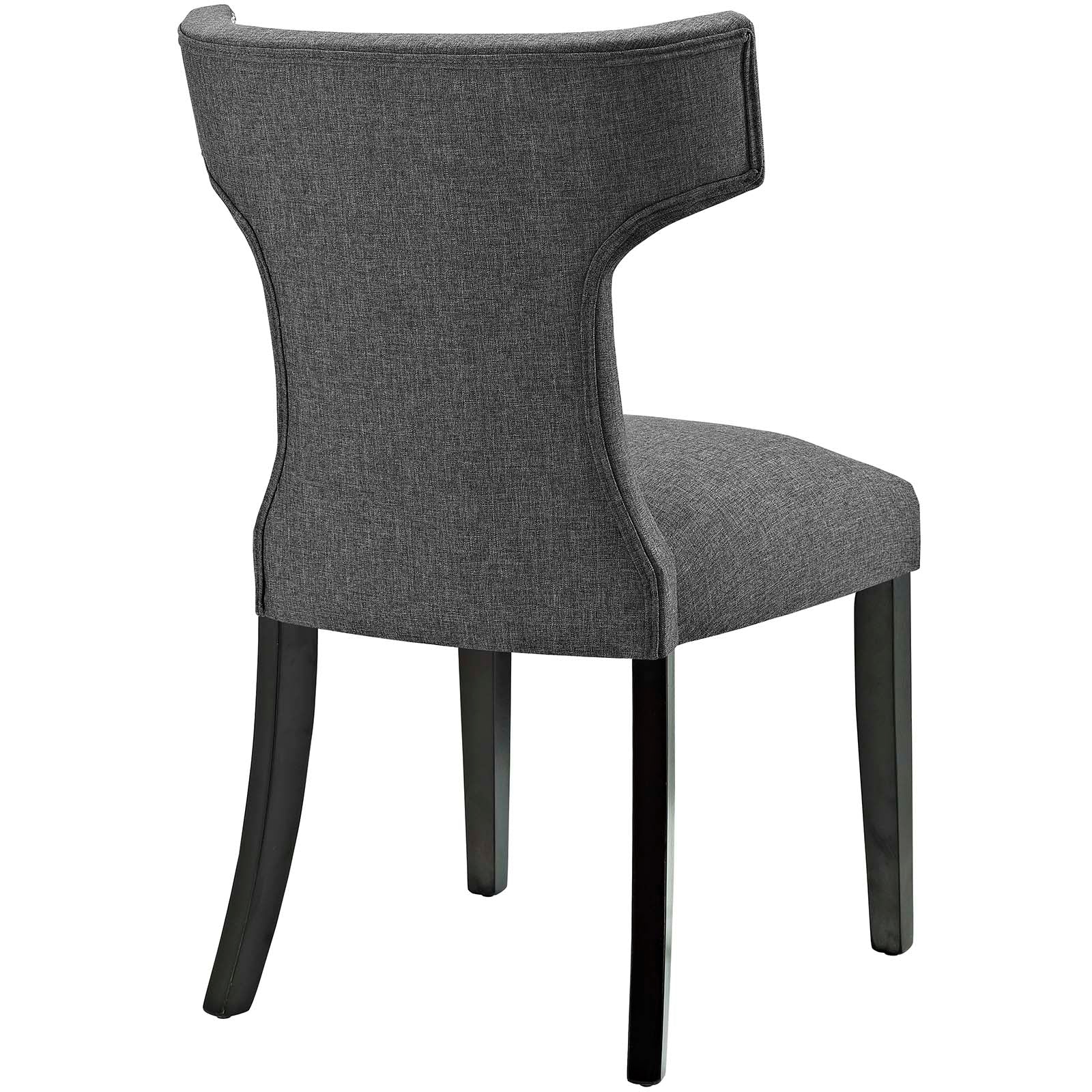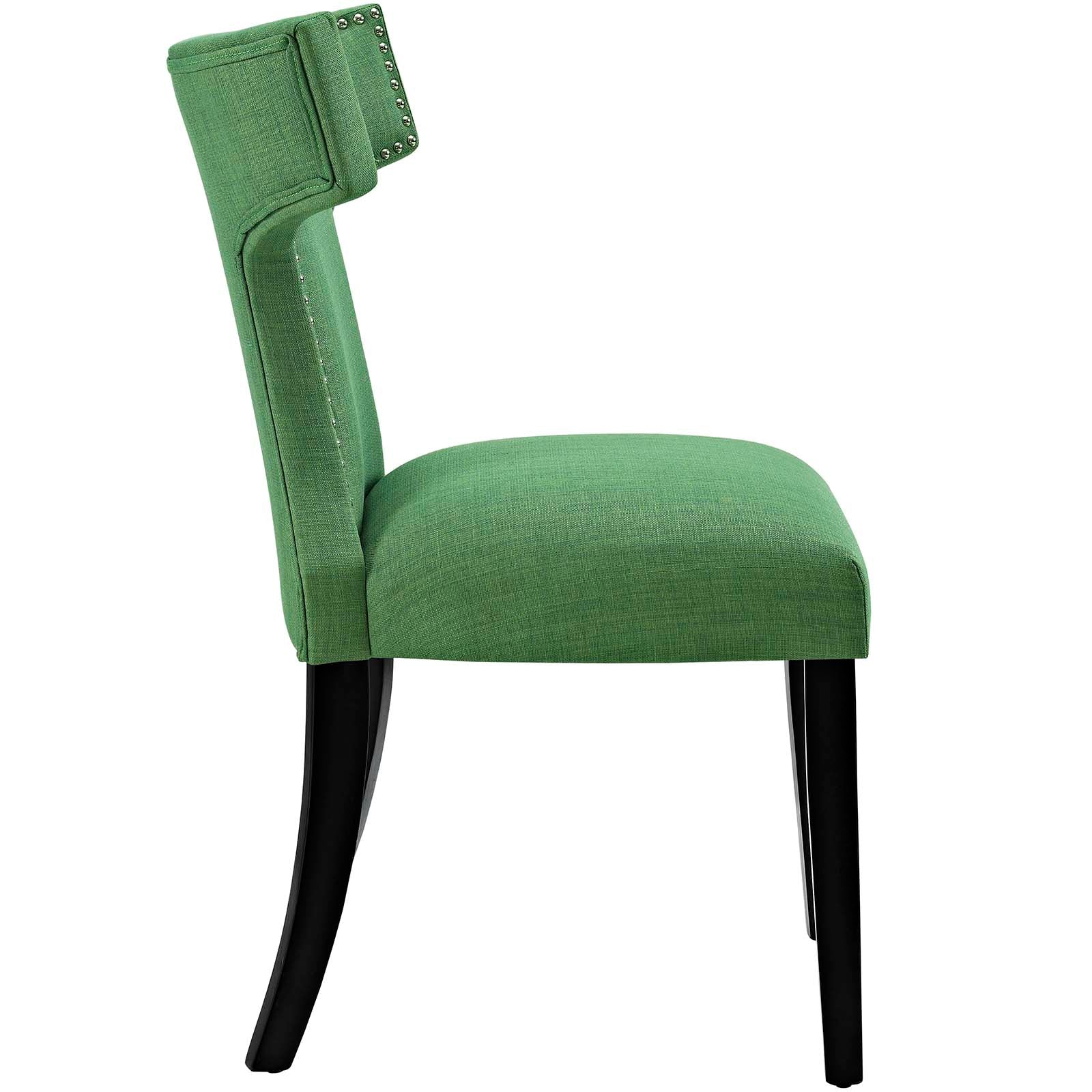 Transform your dining décor with the broadly designed Curve Dining Side Chair. Sweeping lines complement a minimalist shape for a chic look studded with nailhead trim. Curve comes generously padded with dense foam covered in polyester fabric, non-marking foot caps, and delivers just the right touch of finesse with tapered wood legs. Sporting an hourglass shape, Curve works well in a variety of dining room arrangements.
