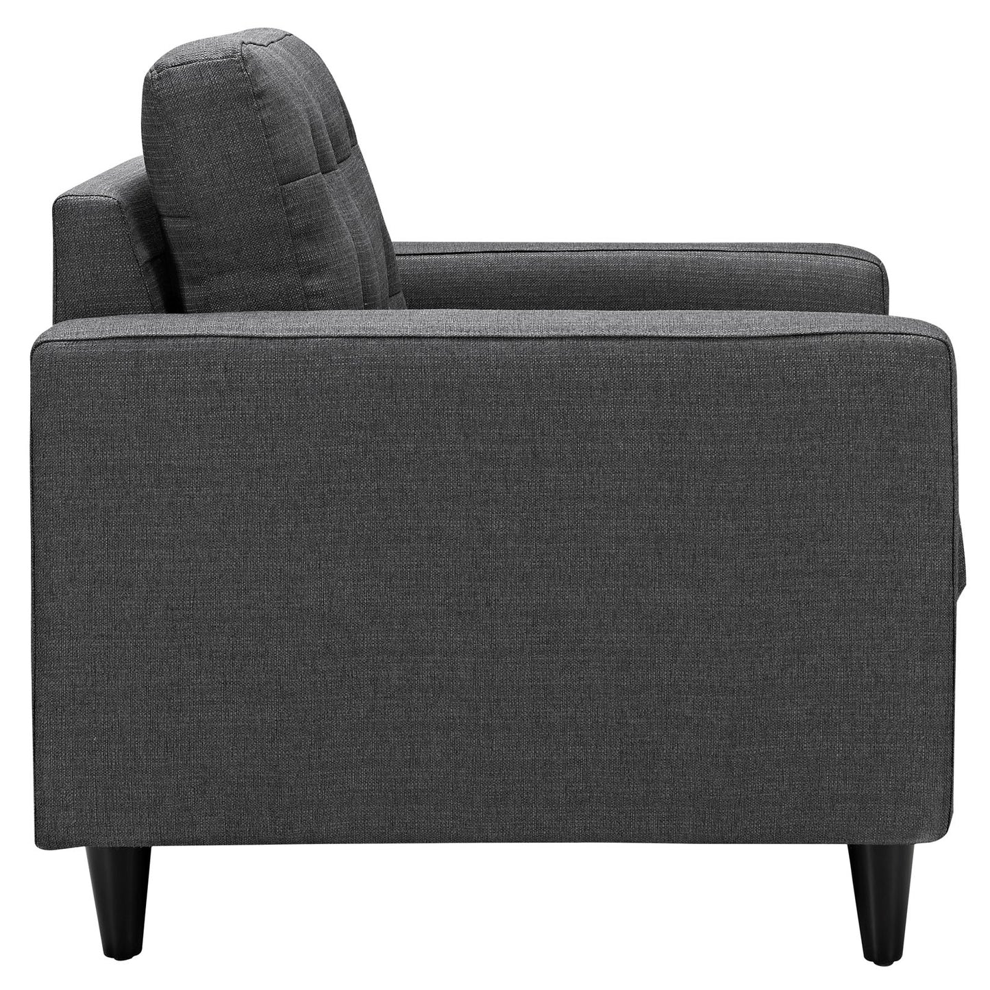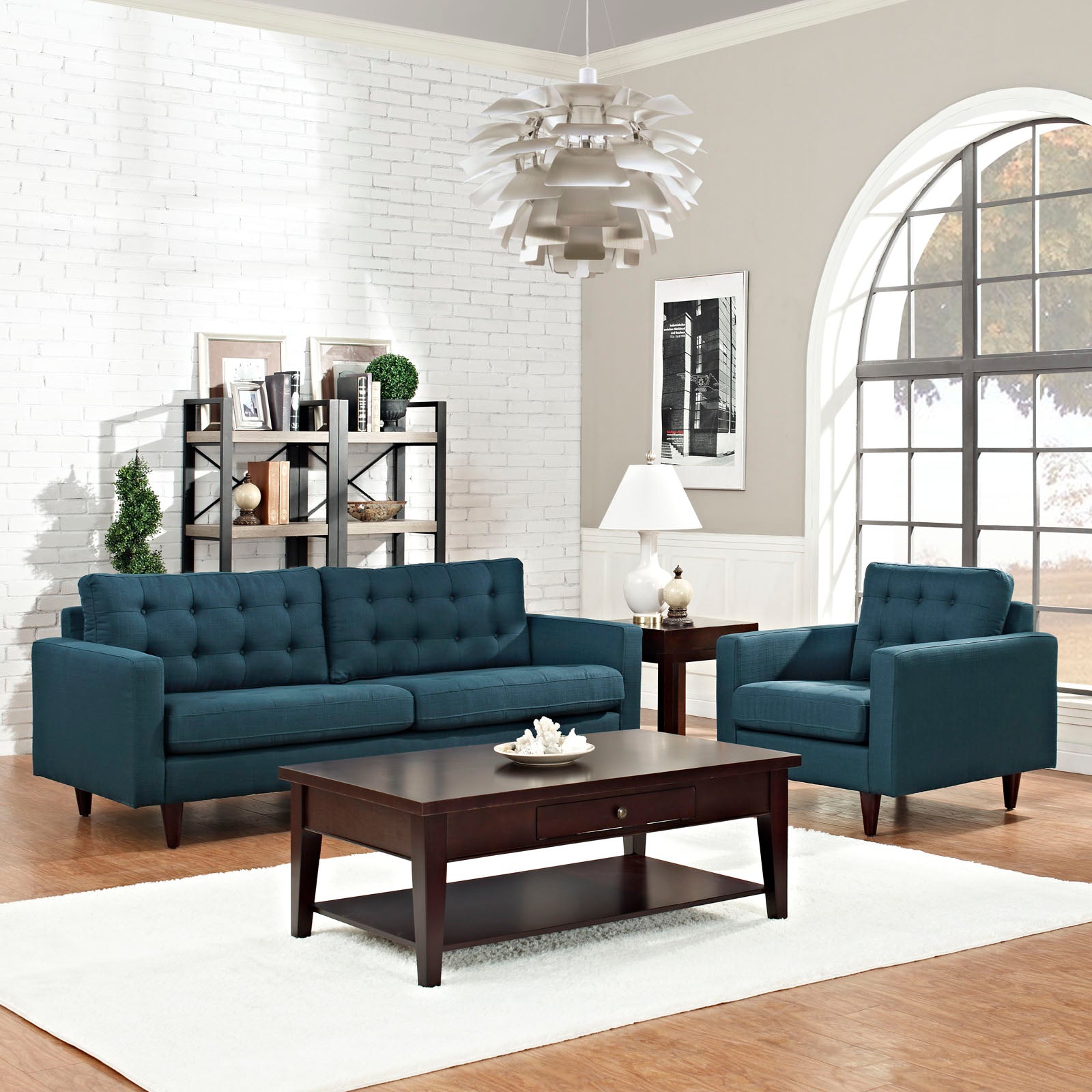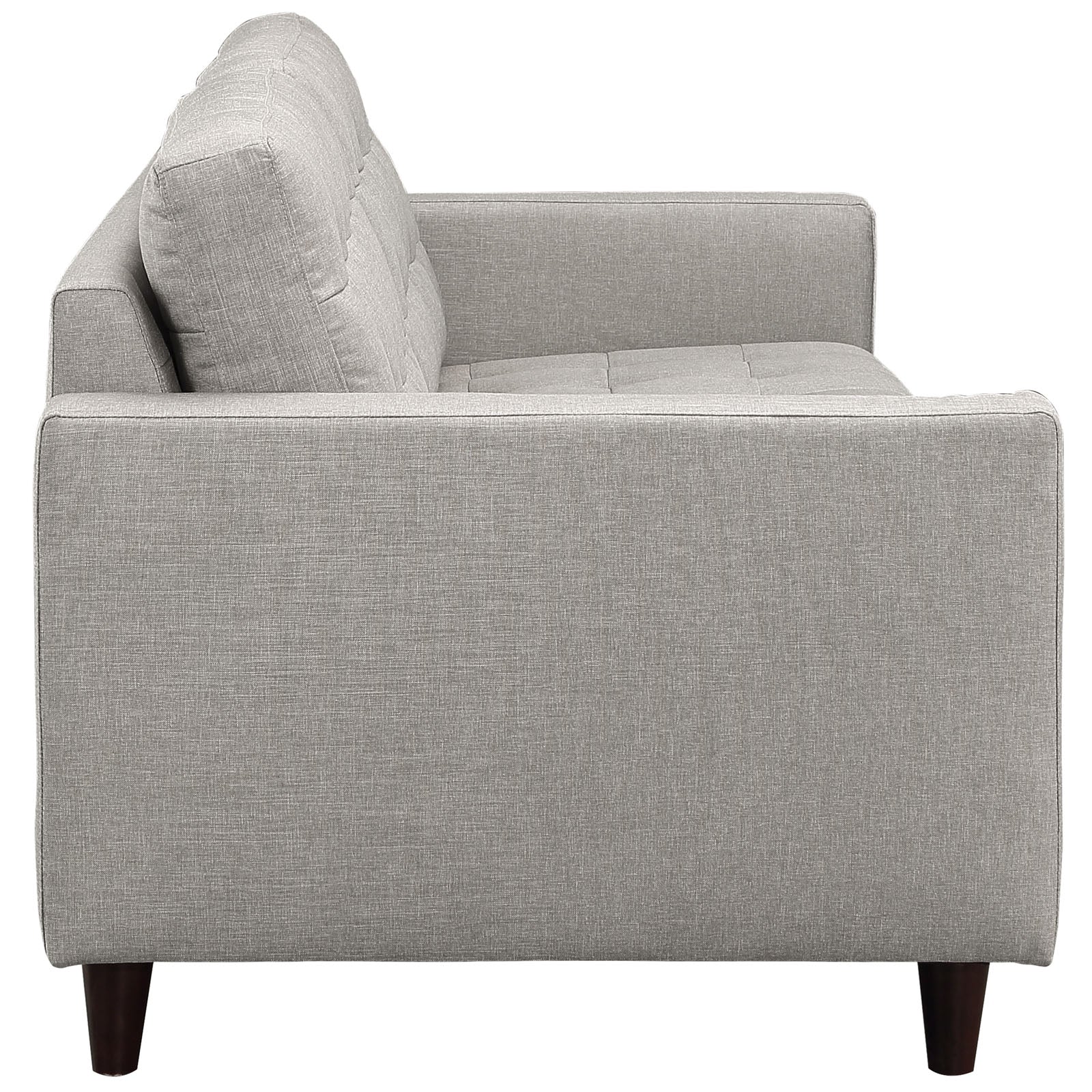 End the rule of unjust sovereignties that wage a useless war for your interiors. Empress leaves the would-be heiress of holistic furnishings in the dust with a design that rivals any competitor. Empress is heralded with deeply tufted buttons, plush cushions, and armrests that convey that perfect air of nobility. The solid wood legs come with plastic glides to prevent floor scratching, and the fine fabric upholstery leaves the recipients feeling richly rewarded.