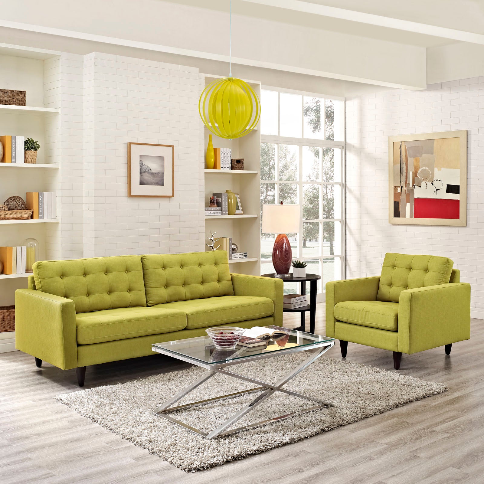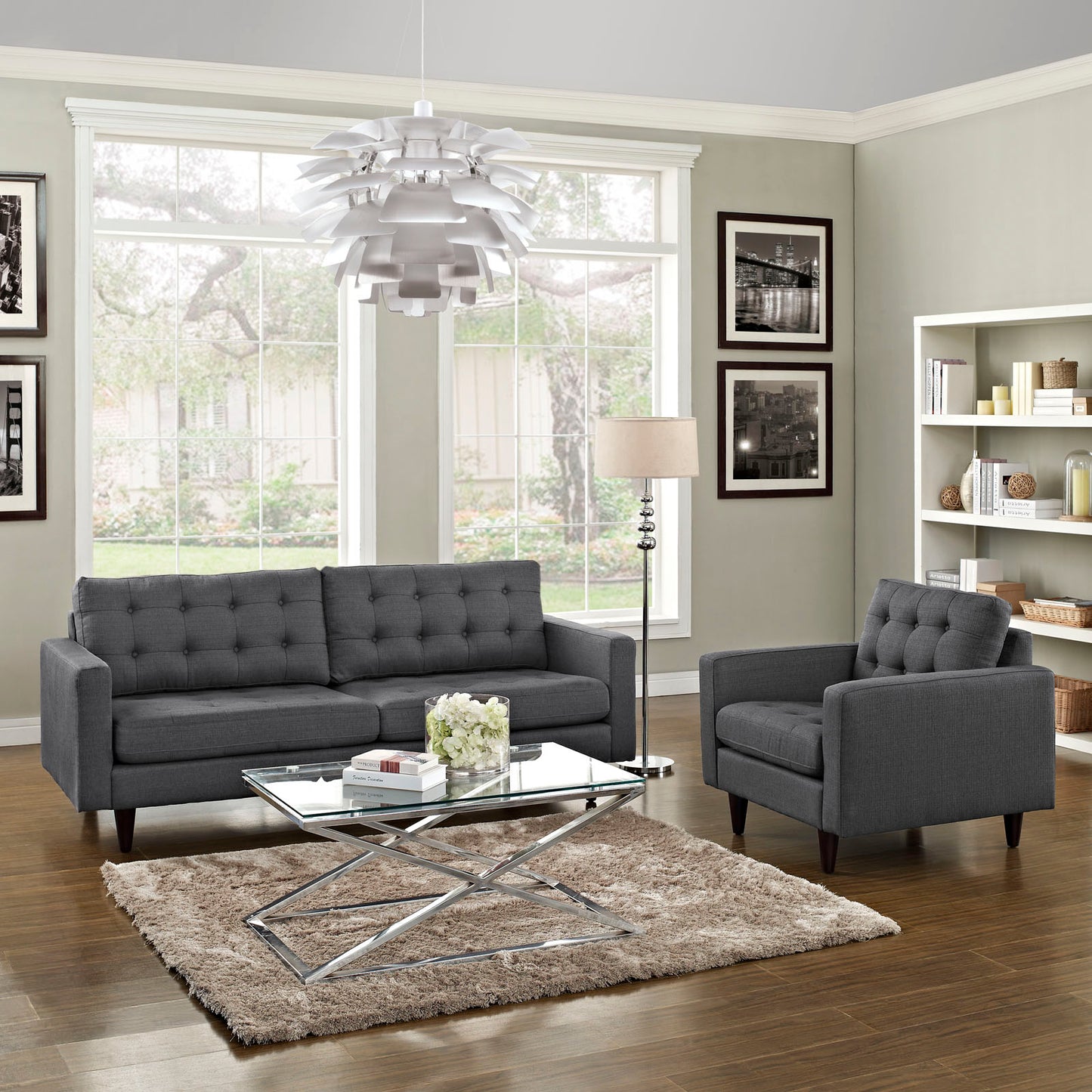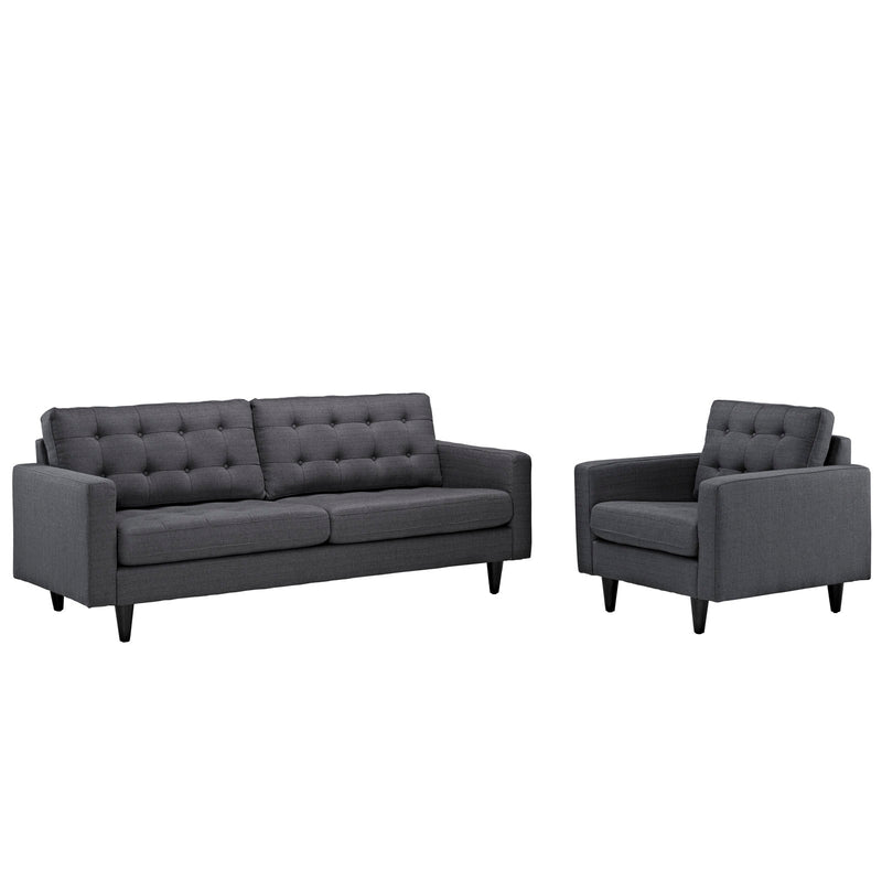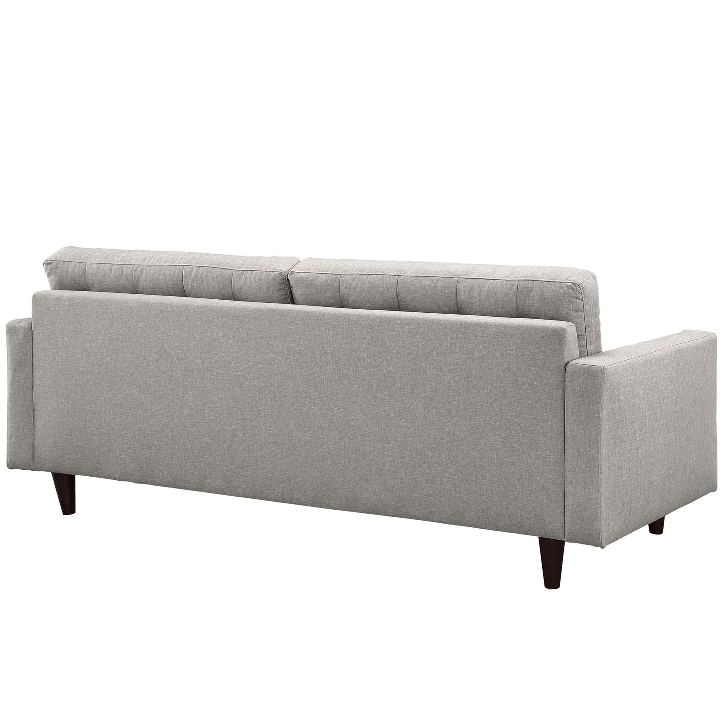 End the rule of unjust sovereignties that wage a useless war for your interiors. Empress leaves the would-be heiress of holistic furnishings in the dust with a design that rivals any competitor. Empress is heralded with deeply tufted buttons, plush cushions, and armrests that convey that perfect air of nobility. The solid wood legs come with plastic glides to prevent floor scratching, and the fine fabric upholstery leaves the recipients feeling richly rewarded.