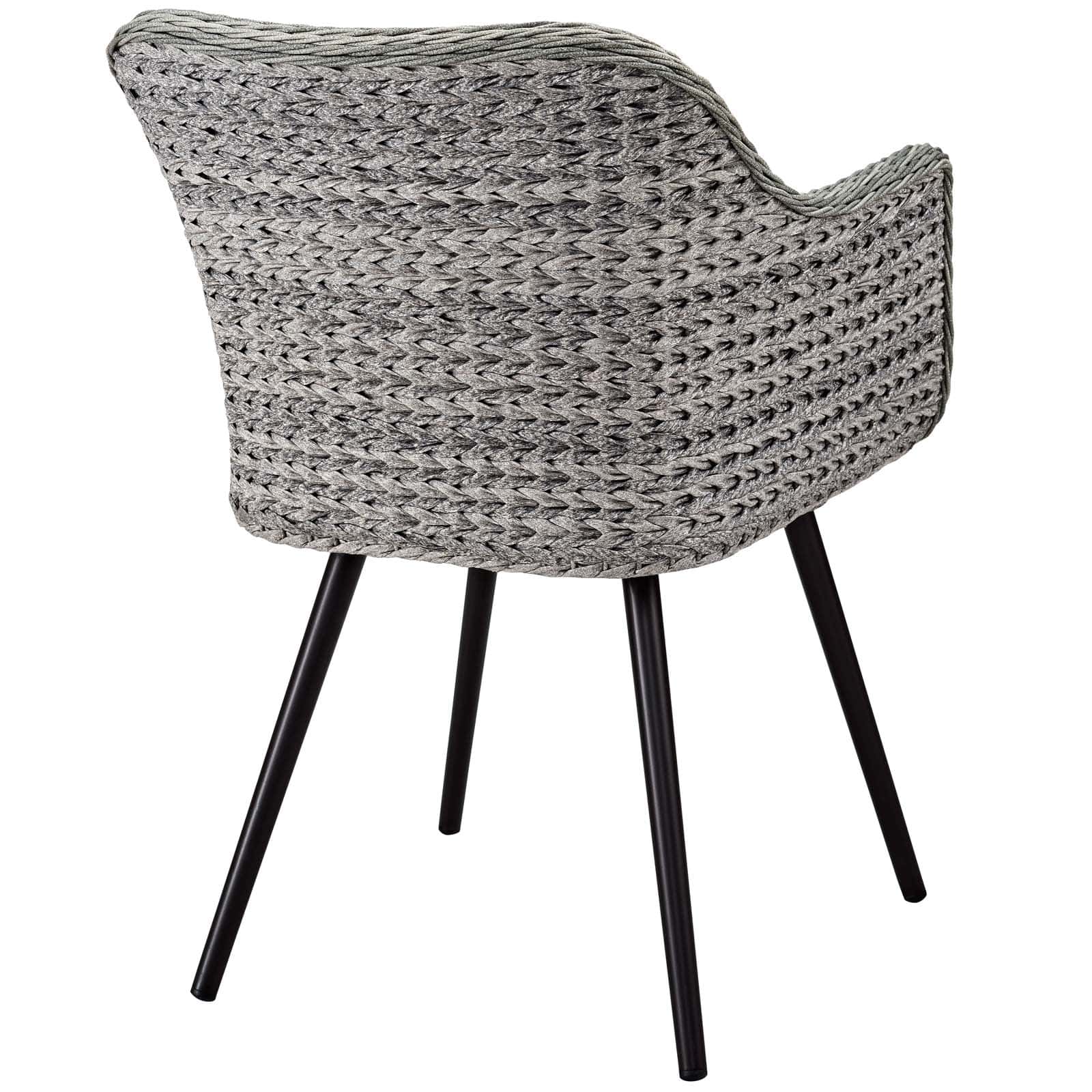 Gather family and friends to indulge in good weather and a premium lounge experience with the Endeavor Outdoor Patio Collection. Sporting a stylish contemporary modern look, Endeavor Patio Dining Armchair features waterproof, black powder-coated aluminum legs and non-marking foot caps. A designer gray-on-gray tone synthetic rattan weave perfect for enhancing al fresco dining in the balcony, garden, backyard, and patio make Endeavor Outdoor Dining Armchair a vital outdoor decor piece. This dining armchair comes with all-weather cushions and offers long-lasting comfort when relaxing or entertaining.