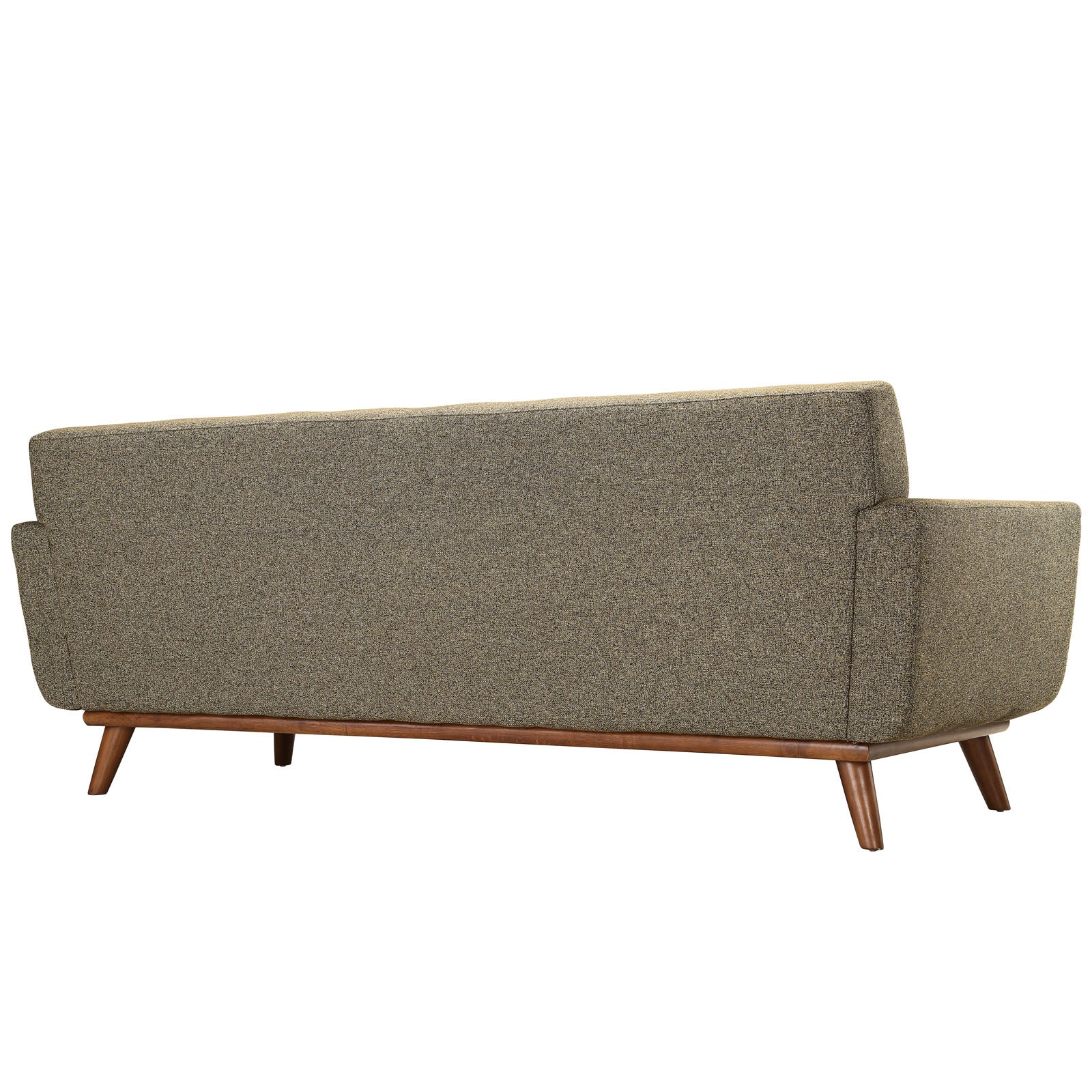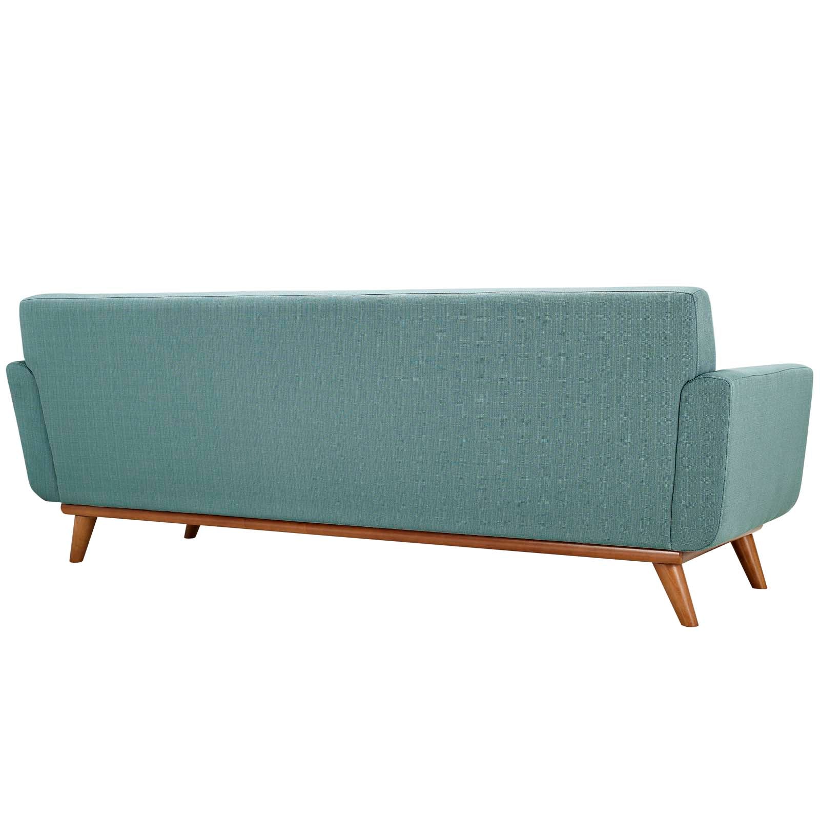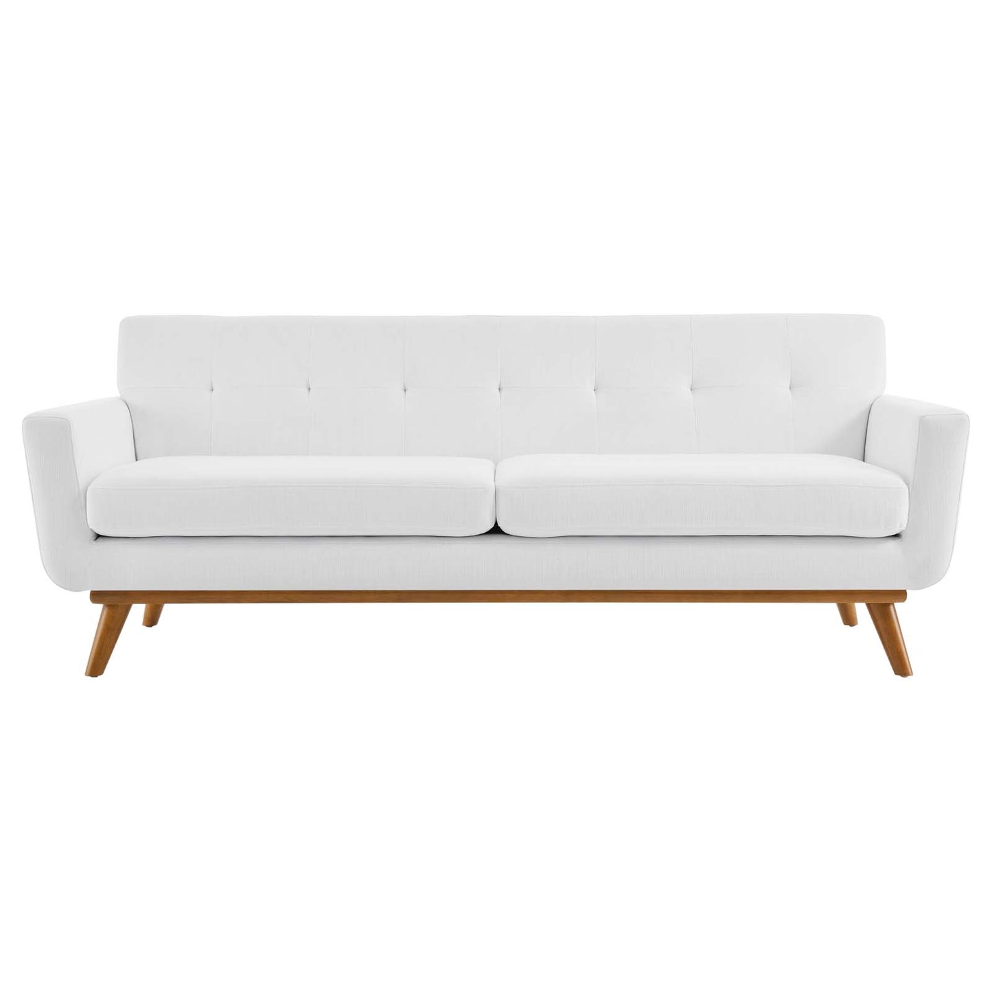 Gently sloping curves and plush seat cushion create a favorite lounging spot. Whether relaxing after a long day at work, settling in with coffee and brunch, or entering a spirited discussion with friends, the Engage Sofa is a welcome presence in your home. Three tufted buttons create eye-catching appeal, adding depth that brings your sitting décor to center stage.