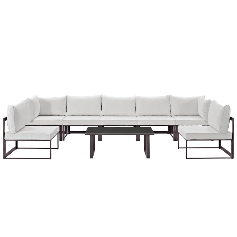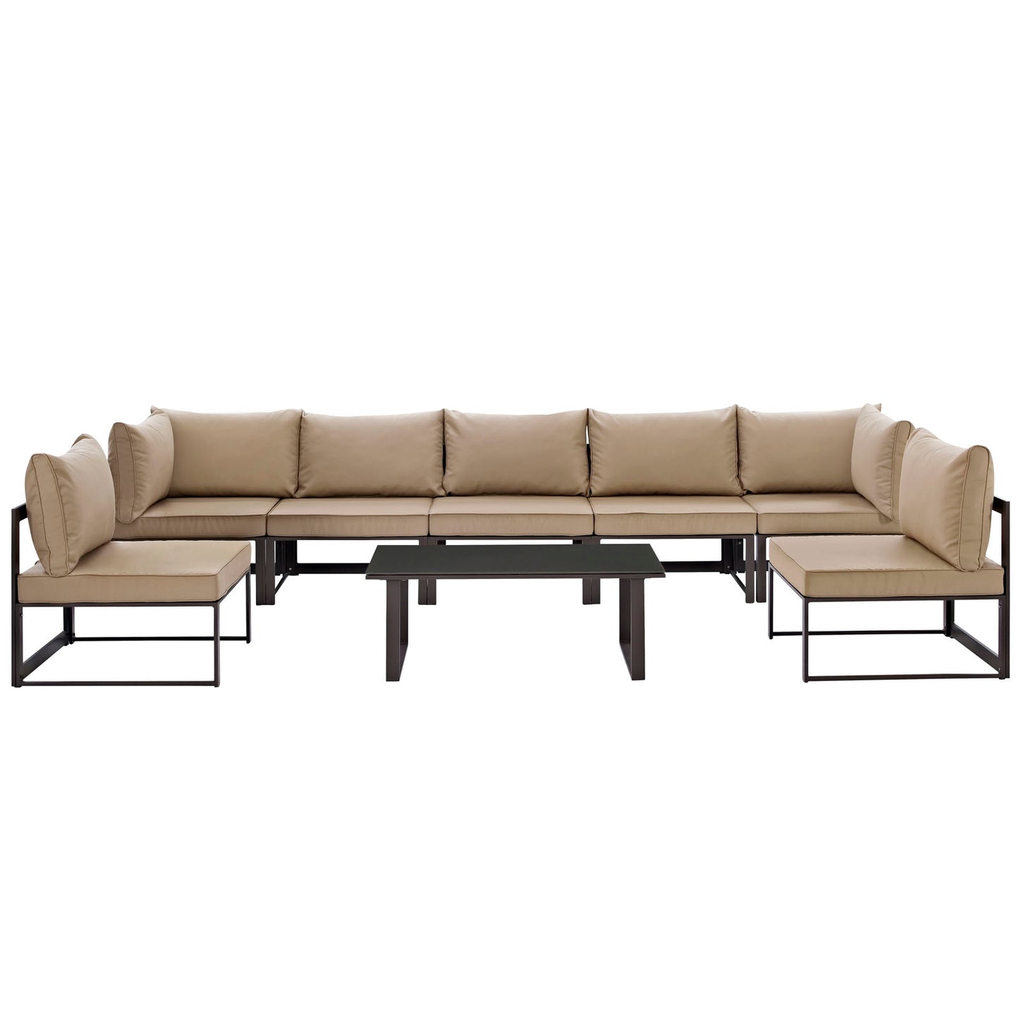 Nestled within close proximity to forests, rivers, valleys, and the Pacific Ocean rests the Fortuna Outdoor Patio Collection. Enjoy the good life with the versatile Fortuna Patio Sectional Sofa Set in an engaging arrangement that makes it easy to enjoy conversations together with friends and family. Made of powder-coated aluminum with all-weather polyester cushions, Fortuna Outdoor Patio Sofa Set appeals to the modern palate without overwhelming the senses. This installment of the Fortuna Outdoor Series is a 9 piece patio sectional sofa furniture set perfect for contemporary patios, backyards, poolside, and other outdoor lounge areas.