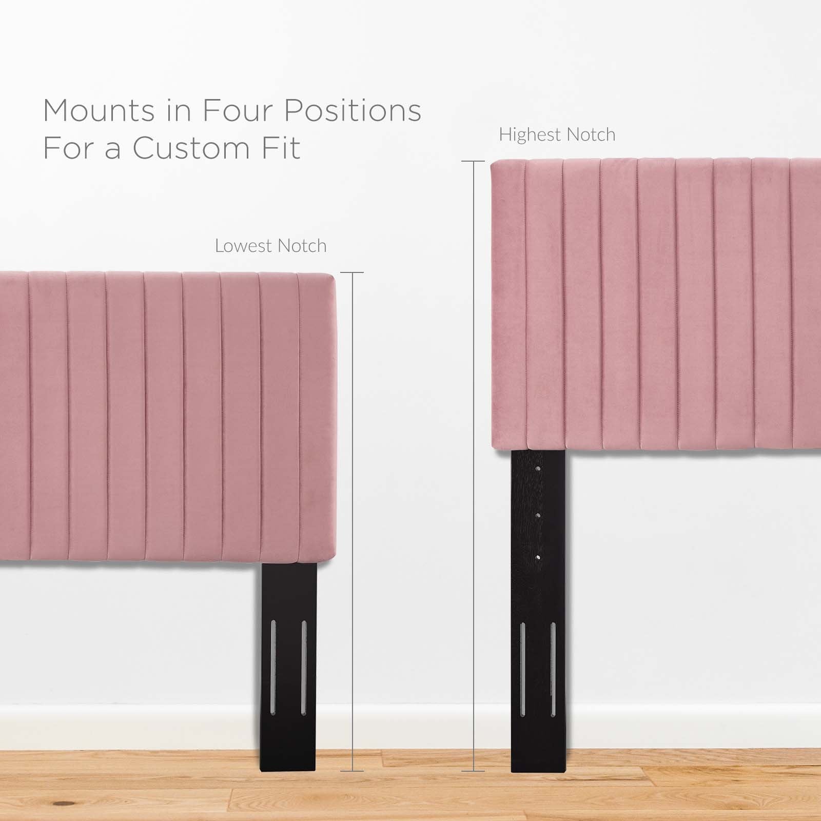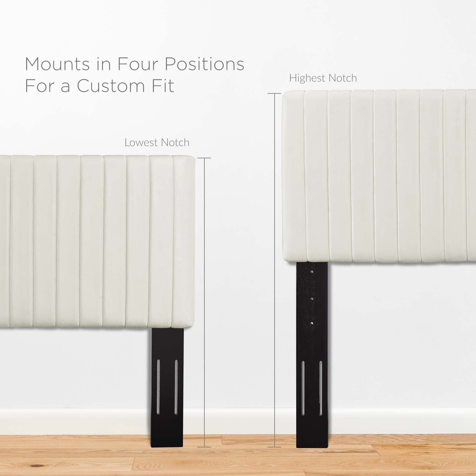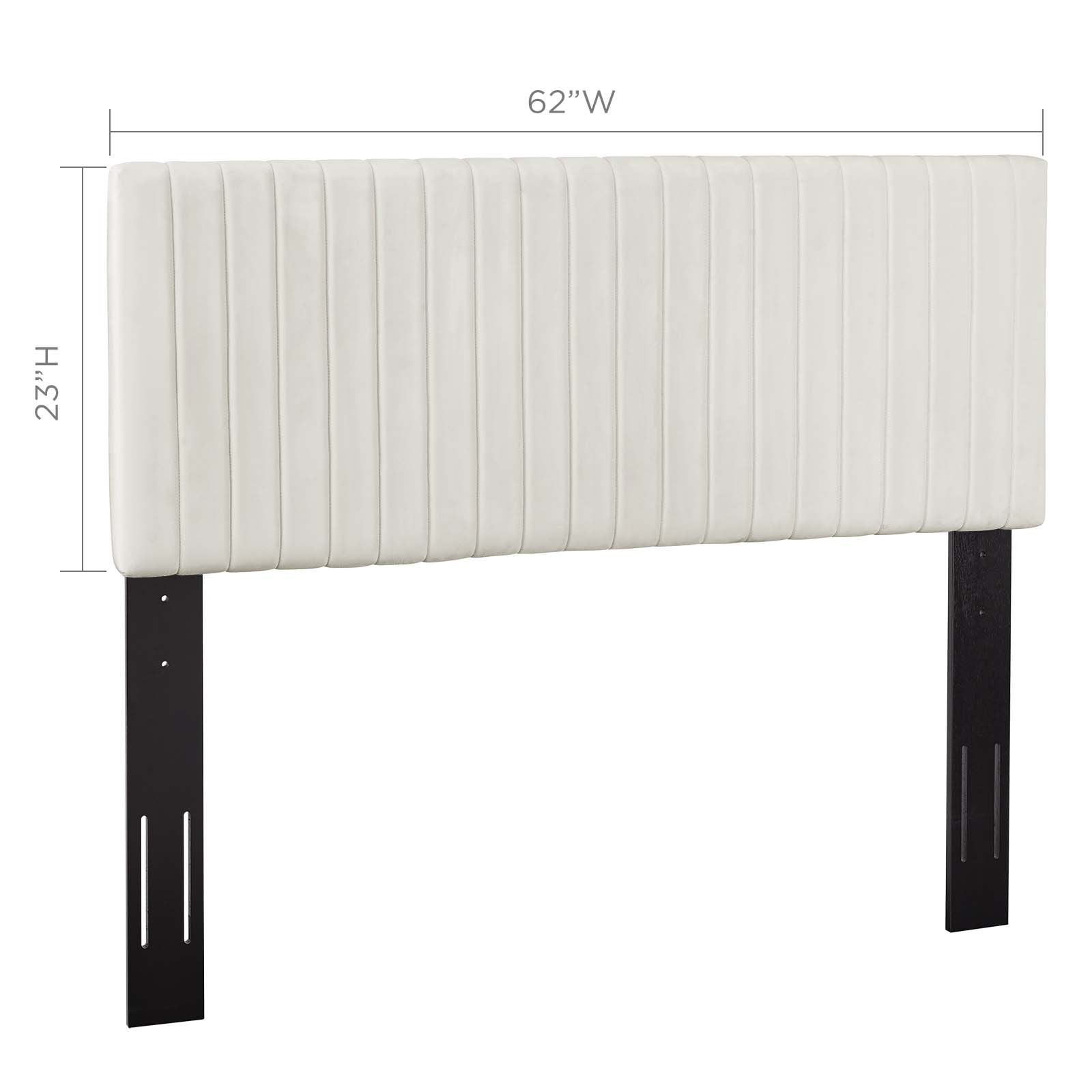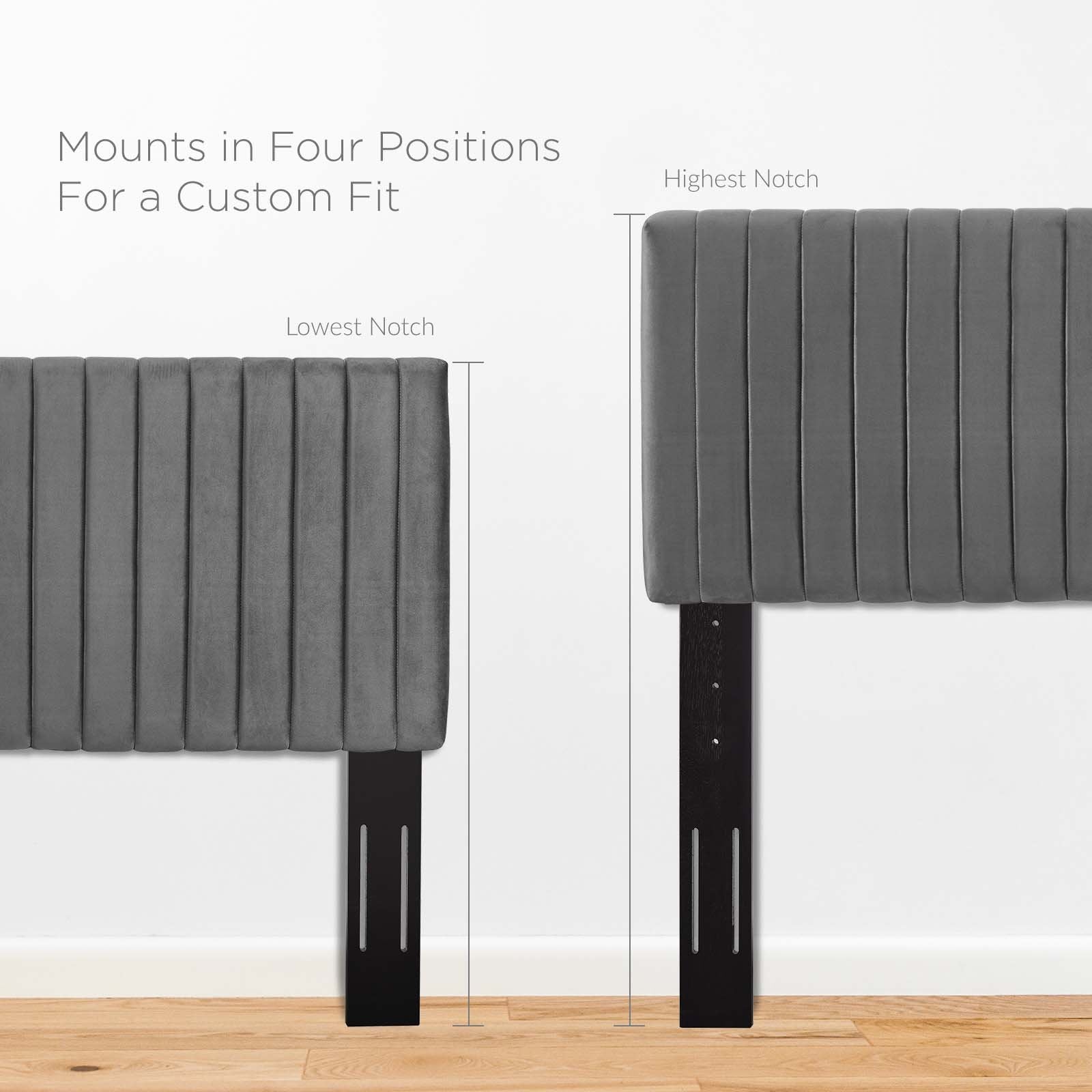 Refresh your master bedroom or guest suite with the Keira Full/Queen Headboard. This elegant queen headboard makes a luxe statement with its channel tufting, velvet texture, and chic squared profile. Boasting a modern design with timeless appeal, this upholstered headboard is covered in soft performance velvet made of stain-resistant polyester and features a solid wood and particleboard construction that’s durable and long-lasting. Lean back and relax while reading or watching TV in bed with the dense foam padding on this upholstered queen headboard. Fits queen and full size beds.