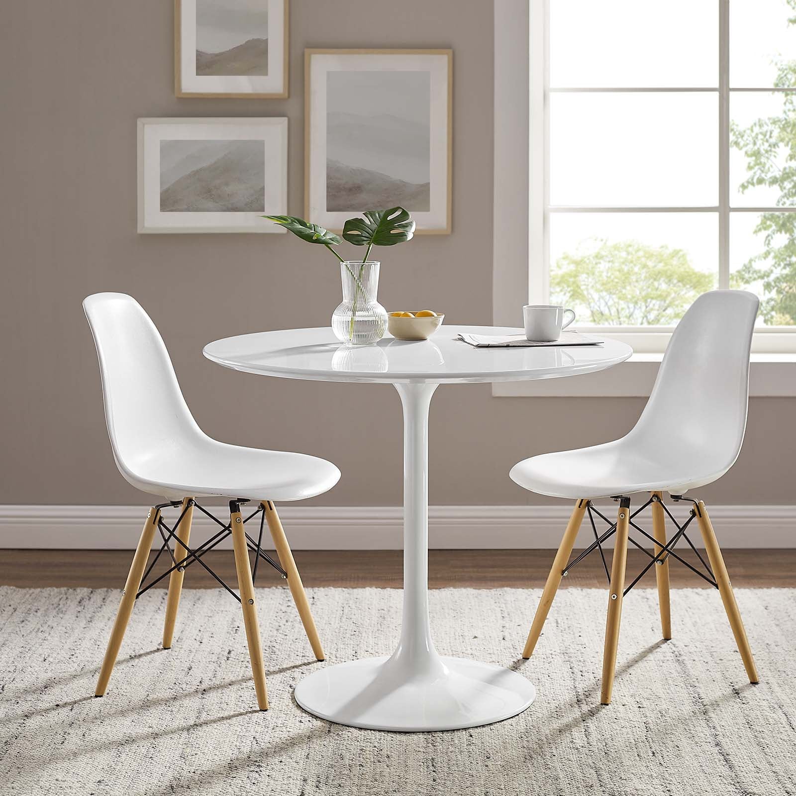 Reflecting a seamless organic shape and timeless form, the Lippa dining table has become a symbol of modernism for over the past 60 years. Before its release, homes were filled with clunky remnants of an industrial age long gone by. But in order to advance into the new world, homes first had to transition from the traditional square table, into a piece that connoted progress. The base and dimensions are true to the original specifications, while the table’s circular white top and metal tapered base are carefully lacquered with a smooth, durable finish.