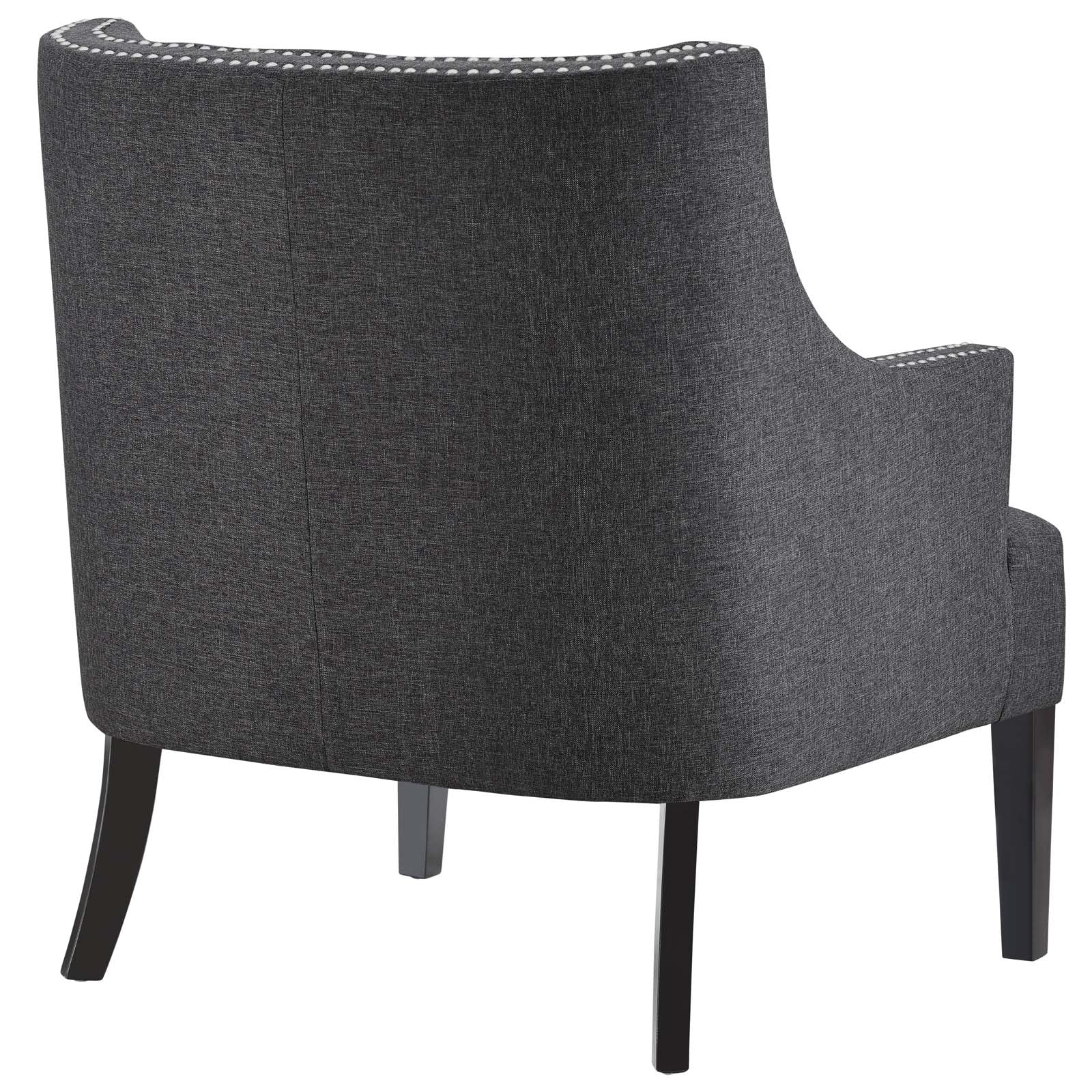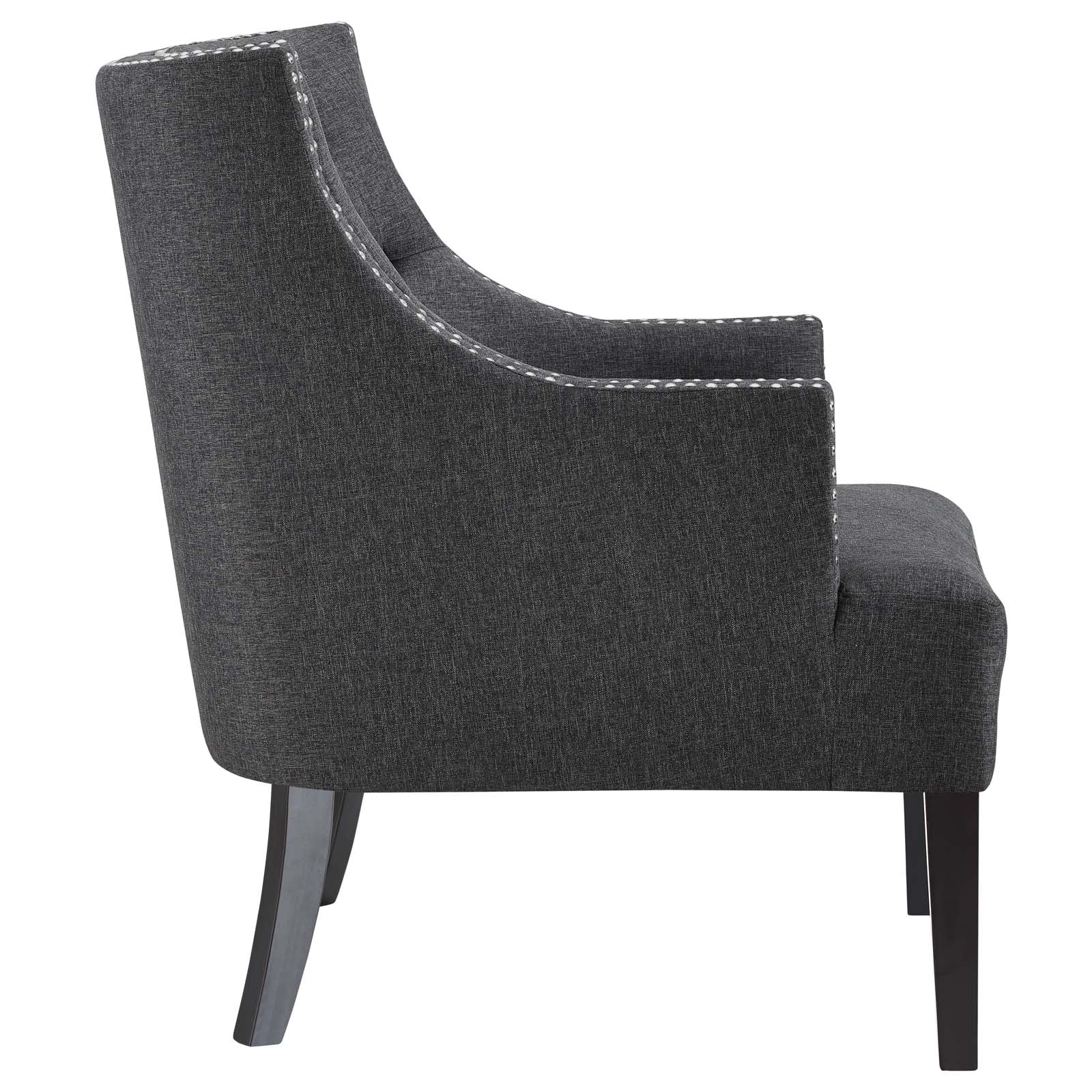 Transform your décor with the Regard Leisure Armchair. Decoratively fashioned with polished nailhead trim and fine tufting, Regard comes generously padded with richly textured polyester upholstery and spacious seat design. Supported by tapered black wood legs with flared back legs and non-marking foot caps, enjoy reading with a cup of tea or coffee while gracefully complementing your living or lounge room décor. Set Includes: One - Regard Armchair