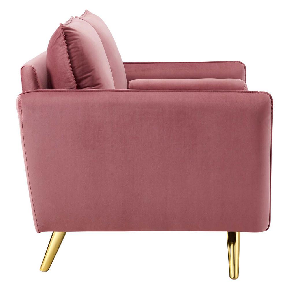 Give new vitality to your home or apartment living space with the Revive Upholstered Performance Velvet Loveseat. With a comfortable yet tailored profile and two bolster pillows, this velvet loveseat beckons guests to sit and stay a while. Its durable stain-resistant performance velvet upholstery grants this two-seater sofa an approachable appeal that’s echoed by its calming color, clean lines, and splayed gold legs. Arriving directly to your doorstep in a convenient shipping box, this upholstered loveseat easily unpacks to quickly become the most well-loved lounge spot in your home.