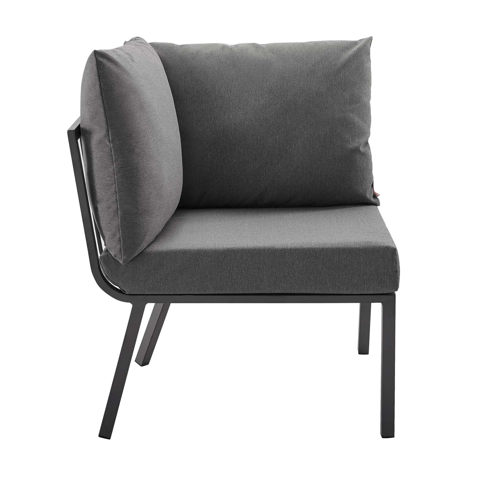 Refresh your outdoor decor with the Riverside Outdoor Patio Aluminum 5 Piece Sectional. Defined by a crisp, coastal style, this installment of the Riverside outdoor sectional sofa furniture collection features an open slatted back design, angled back legs, and plush 4" thick all-weather UV-resistant fabric cushions. Solidly constructed with a powder-coated aluminum frame, the Riverside outdoor sectional will enhance the look of your patio, backyard, balcony, porch, deck, or poolside area.