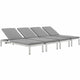 Maintain clean lines with the Shore Outdoor Patio Chaise Lounge Chair Set. Strong and durable, relax as you choose from four available recline positions while relaxing on machine washable all-weather cushions, or sunbathe while lying flush on Shore’s breathable Textilene® mesh. Made with an anodized brushed aluminum frame, Shore Patio Chaise Lounge is a breeze to assemble, comes with clear wheels for easy mobility on the top end, and non-marking black plastic foot caps under the bottom two support legs. Chic and minimalist, the Shore Outdoor Sun Lounger is a piece built to last with the comfort and versatility you’ve been looking for in an outdoor lounger.