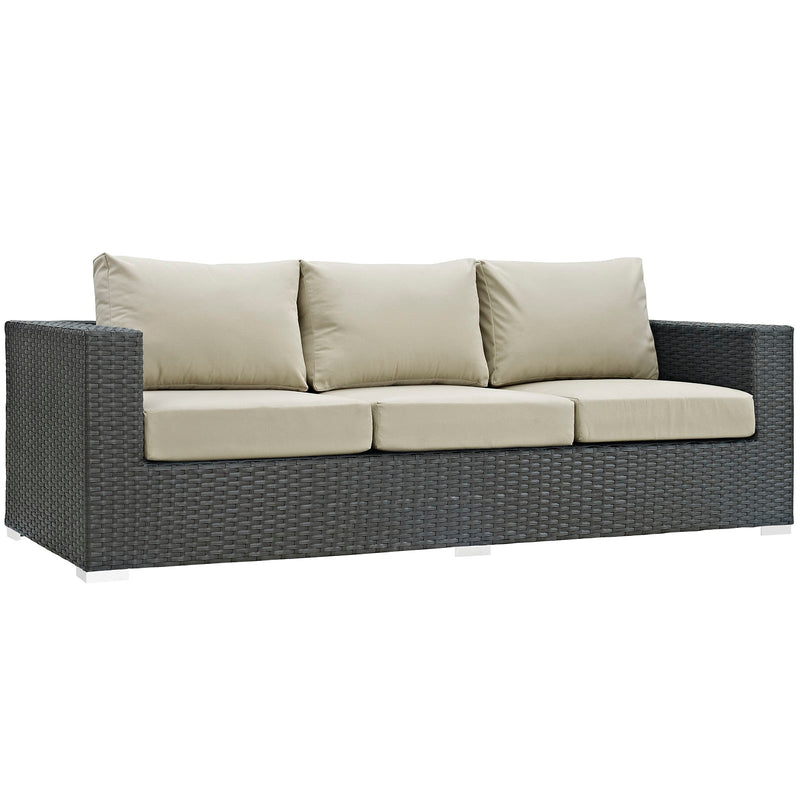 Outfit your patio with an imaginative Sojourn Outdoor Patio Furniture series. The Sojourn Outdoor Patio Sofa offers a robust seating experience that easily rearranges according to usage. Outfitted with industry-leading Sunbrella® fabric cushions, synthetic rattan weave, UV protection, powder-coated aluminum frame, immensely enjoy your outdoor time with an outdoor wicker couch that enhances patio, backyard, or poolside areas. This installment of the series is an Outdoor Patio Sofa.