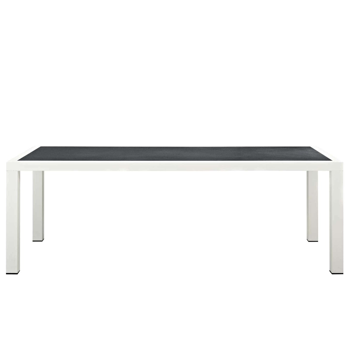 Gather family and friends for pleasant weather and good conversation with the Stance Outdoor Patio Dining Furniture Collection for an exceptional al fresco dining experience. Boasting a contemporary modern look, Stance 90.5” Outdoor Patio Dining Table features a sleek powder-coated aluminum frame, and spray stone glass table top, for an easy wipe-clean surface that is ideal for dining and entertaining. A versatile patio dining table designed for long-lasting durability, the Stance Outdoor Dining Collection can be mixed and matched and effortlessly arranged to fit the spontaneous needs of you and your guests. Comfortably seats up to eight.