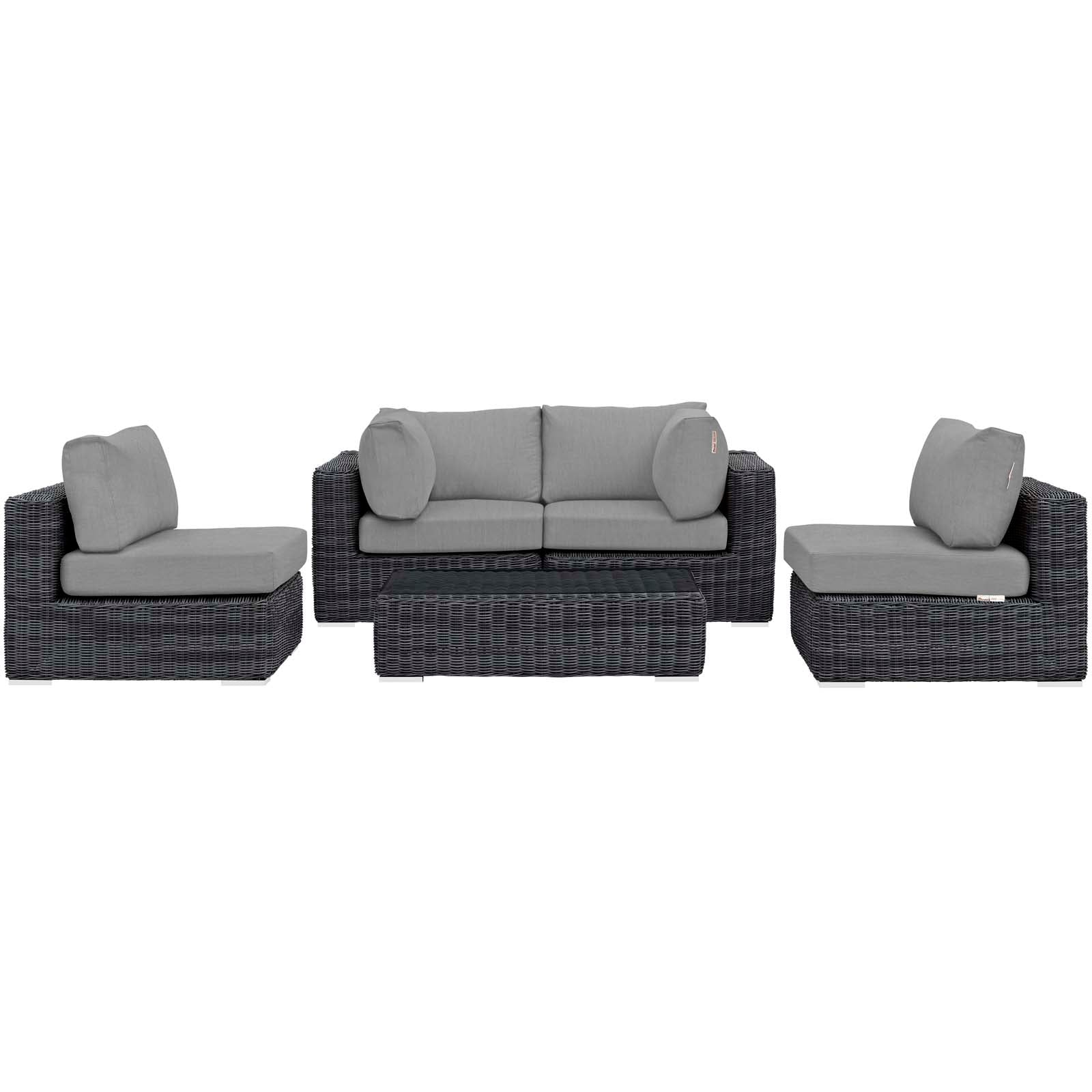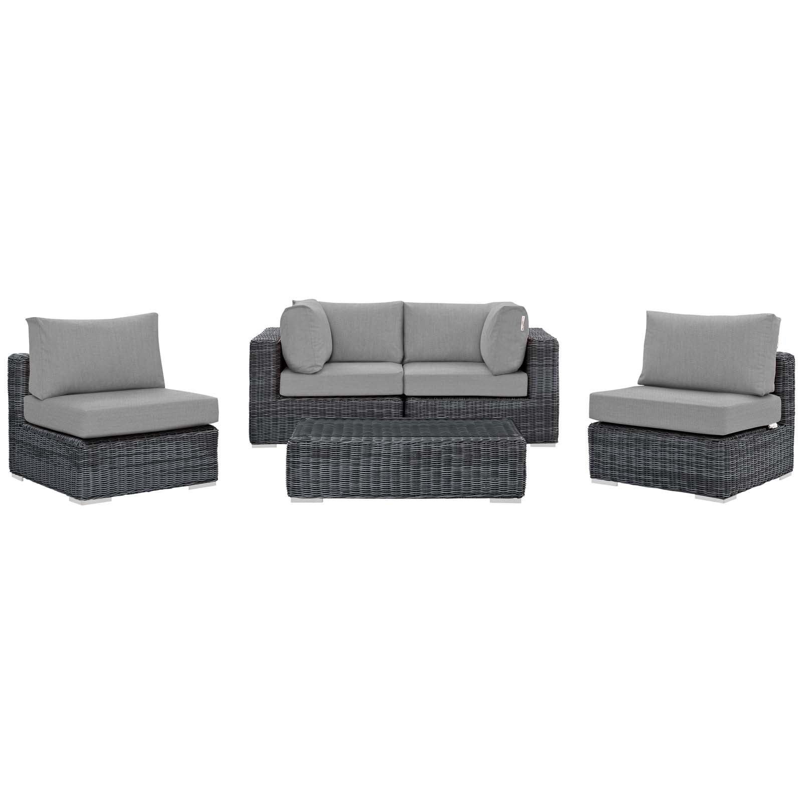 Experience the outdoors with exceptional comfort and quality. Summon Outdoor Patio Sectional Sofa set offers an exquisite two-tone synthetic rattan weave, plush all-weather cushions with industry-leading Sunbrella® fabric, UV protection, and a sturdy powder-coated aluminum frame. Featuring an elegant modern look, Summon Patio Sectional Sofa Set is part of an avant-garde outdoor sectional series well-equipped for enhancing patio, backyard, or poolside gatherings. This installment of the series is an Outdoor Patio Furniture set with Coffee Table.