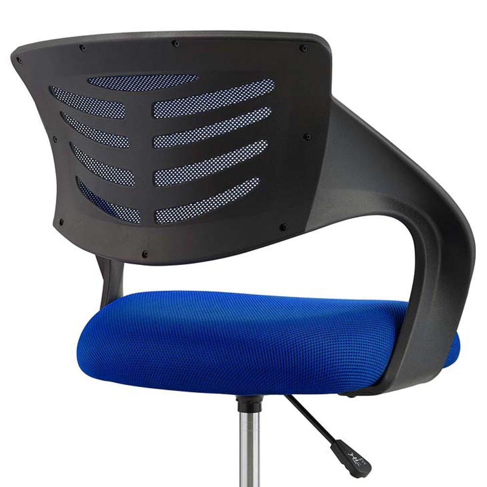 Energize your office decor with Thrive. This sturdy nylon frame drafting chair comes with a breathable mesh back which combines passive lumbar support and cooling comfort. Spiraling armrests imbue a creative vibe, while the densely padded mesh seat delivers reliable comfort. Complete with one-touch height adjustment, full 360-degree swivel, and five dual-wheel casters for natural movement of either carpeted or hardwood surfaces, Thrive is an office chair that stands to be at the forefront of your work endeavors.